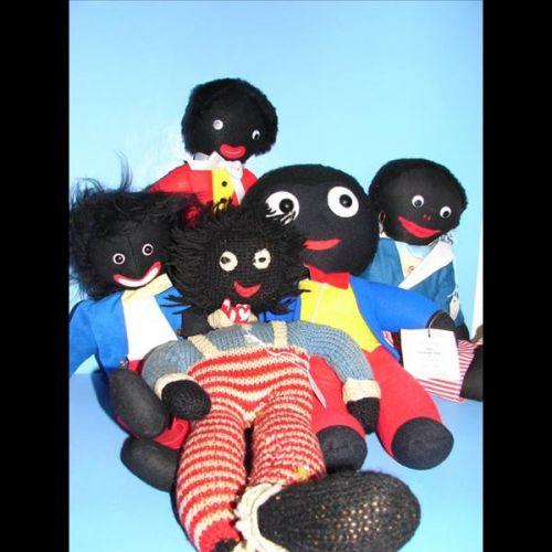 5 Golliwogs Group of 5 Golliwogs ranging in size from 15" to 21". One by Nisbett Golly 5022 and One handmae by Pam Betterton. Excellent Condition. Weight 3.5 lbs.