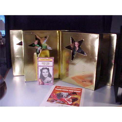 This set has Barbie in 4 different Gone With the Wind dresses and Rhett Butler. There is also a tape and the Tara background picture. I bought them in 1994 from Timeless Creations and never opened them until I took these picture. The boxes have a few minor bumps from being mailed but nothing that would hurt value. Rhett's box has gold near the bottom that looks different but it must have been produced that way as I just opened him. If you want individual pictures of each just email for them. This sale is a final sale as I will not take them back because a box or two has a scape or bruise. There is too much concern about boxes. The dolls are mint. They are priced at just about what I paid with postage and insurance. When displayed it is a lovely collection and definitely a must for" Gone With the Wind "collectors.