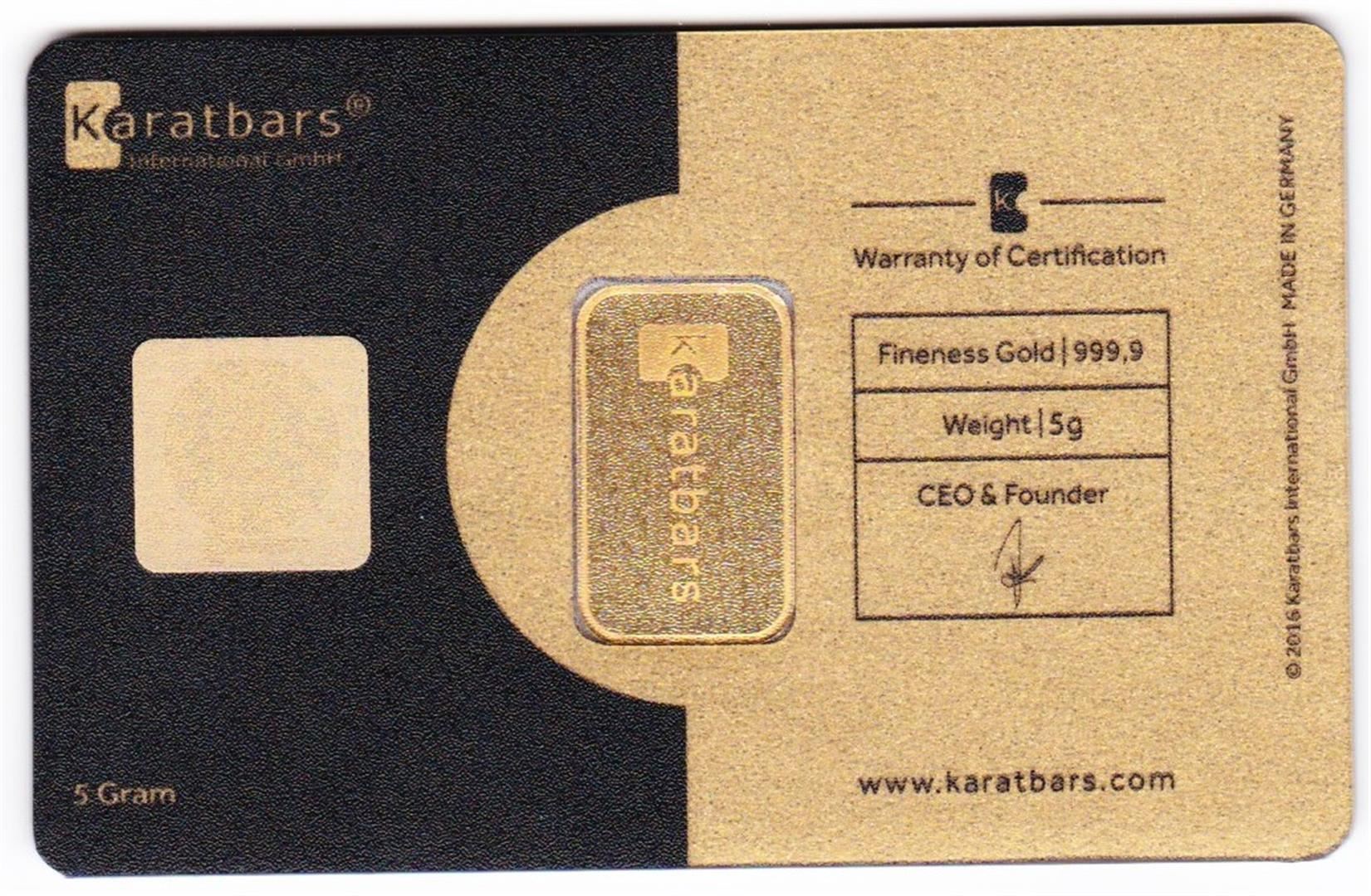 One 5 Gram .999 Fine Gold Karatbars Card.