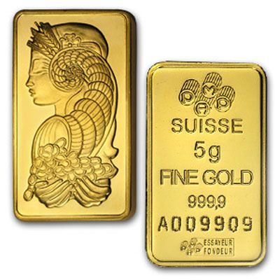 5 Gram Suisse Gold Bar .9999 Fine Gold 24K **|**|** ; MSRP: $1100