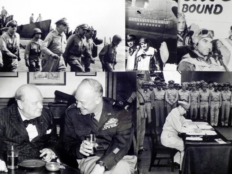 Here are 5 photographs that represent great rare WWII photos. These are 8 x 10 black & white glossy high quality archive reprints. All are in excellent condition They feature: WWII Pilots Tokyo BoundWinston Churchill & Dwight EisenhowerDouglas MacArthur Signs Japanese SurrenderWWII B-17 Memphis Belle & Crew USAFGen. Douglas MacArthur's Return