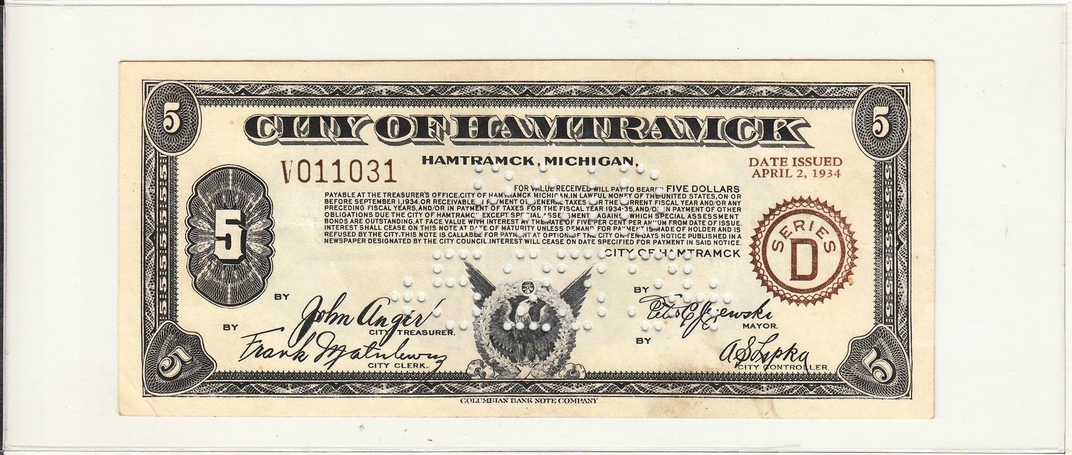 $5 HAMTRAMCK OBSOLETE MICHIGAN