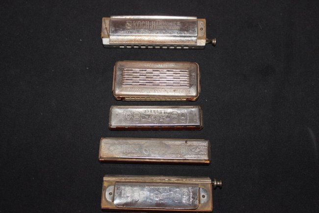 5 HARMONICAS ALL VINTAGE MADE IN GERMANY - 2 BY KOCH - 3 BY M. HOHNER - ALL PLAYABLE