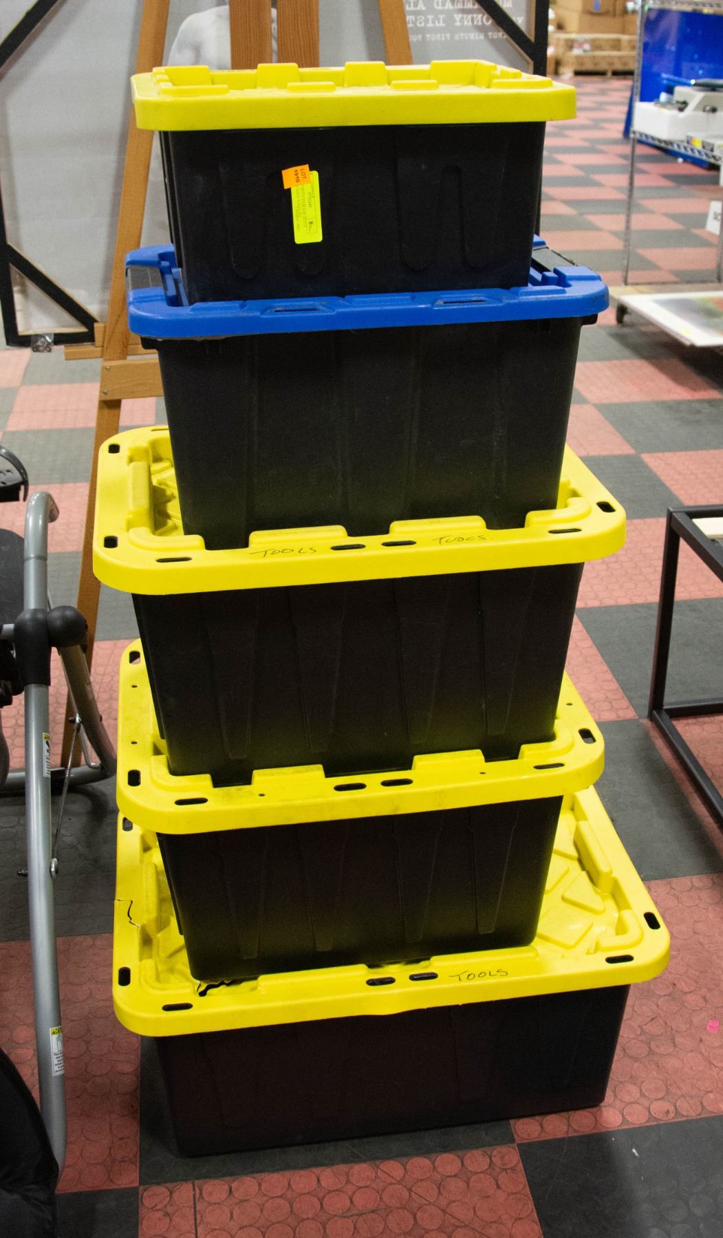 5 HEAVY DUTY STORAGE TOTES VARIOUS SIZES WITH LIDS