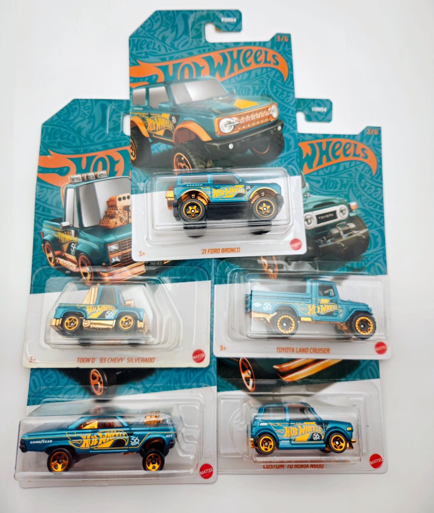 5 HOT WHEELS 56TH ANNIVERSARY 83 CHEVY, TOYOTA