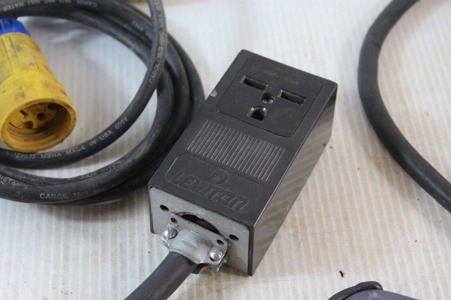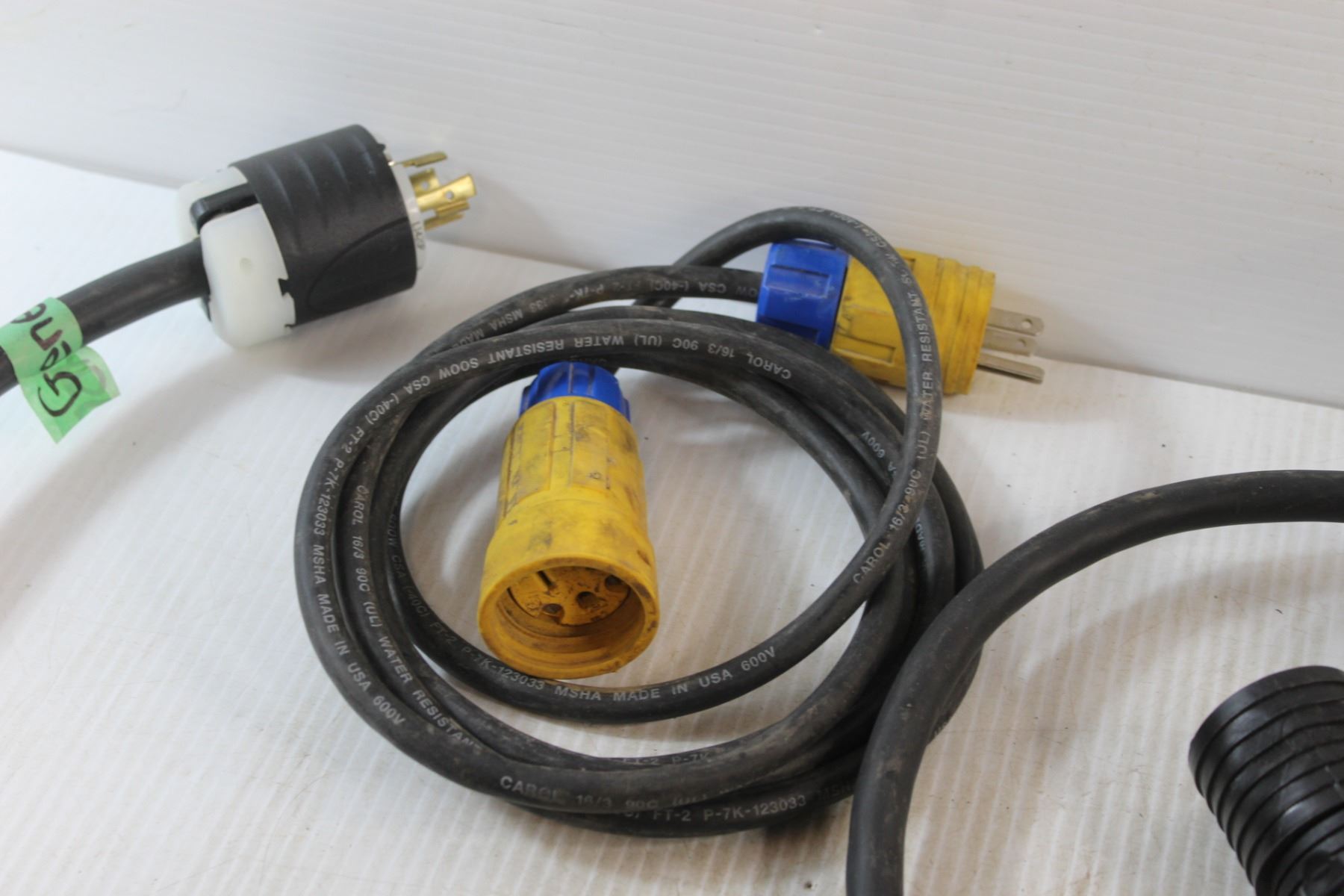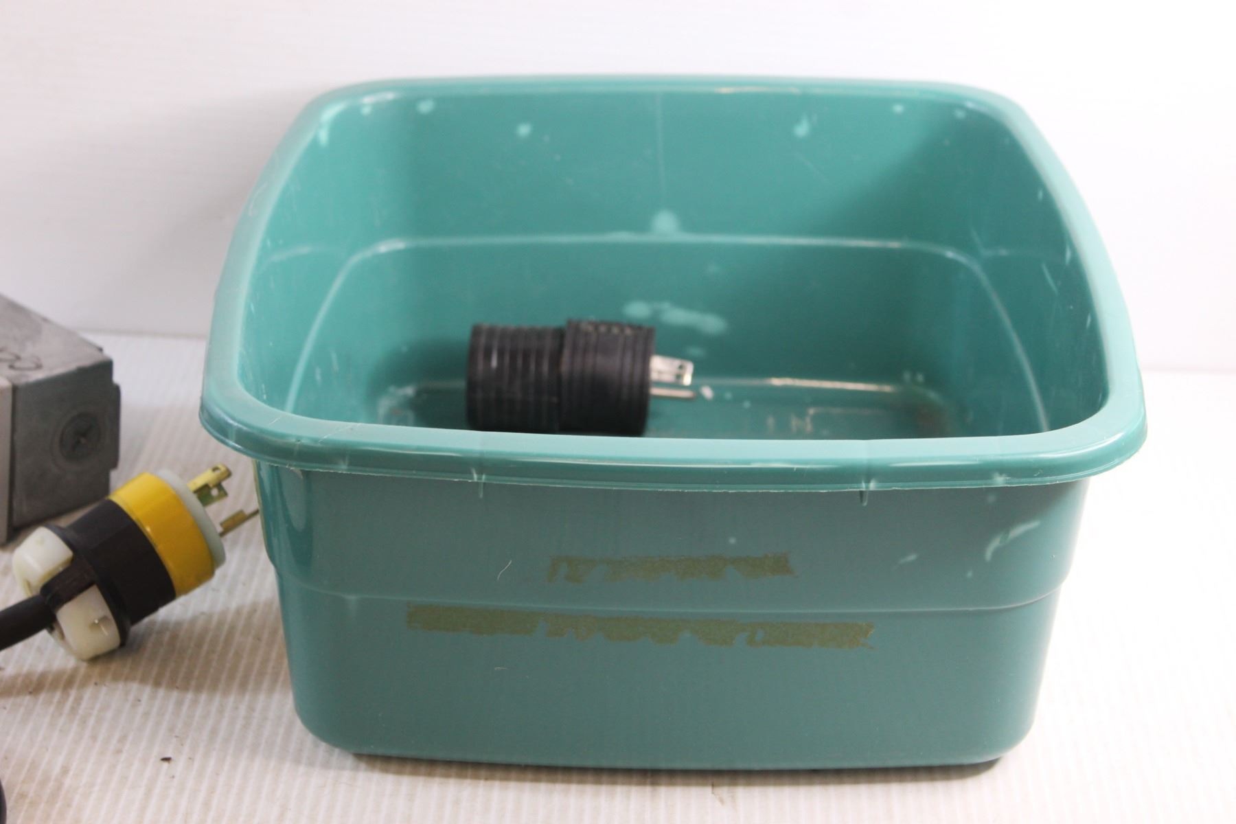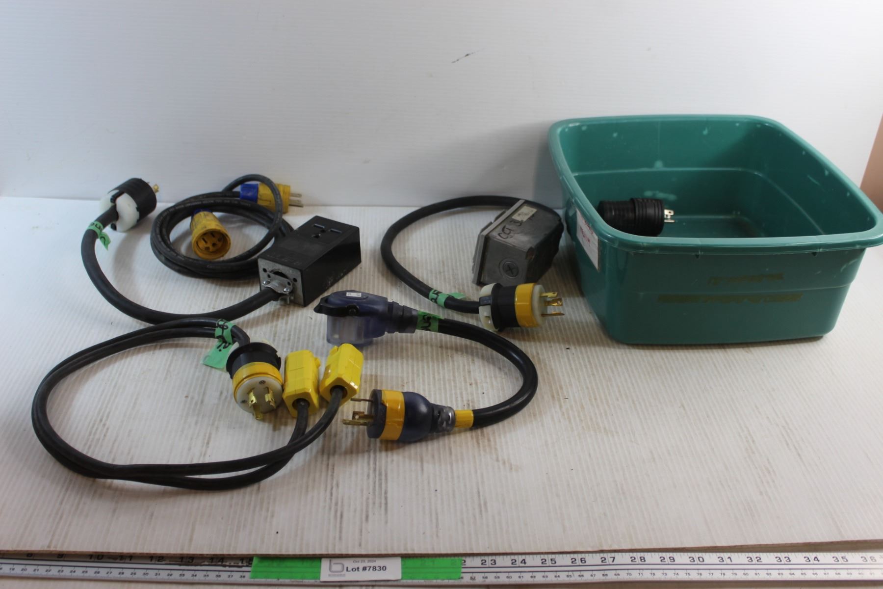 (5) Heavy Duty Extension Cords - As Is and Medium Plastic Tote