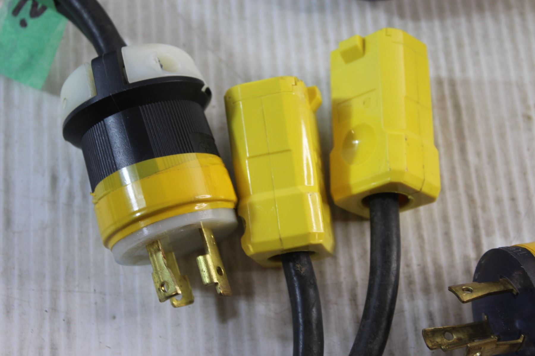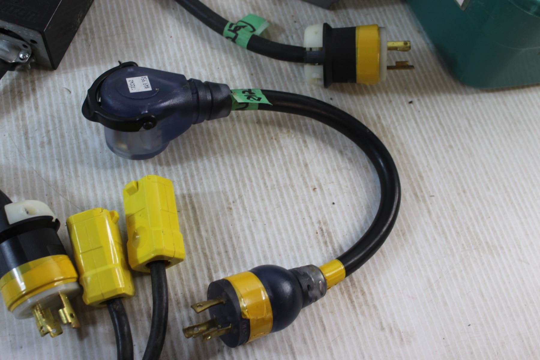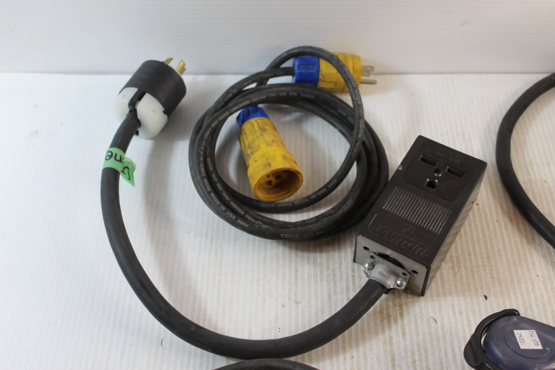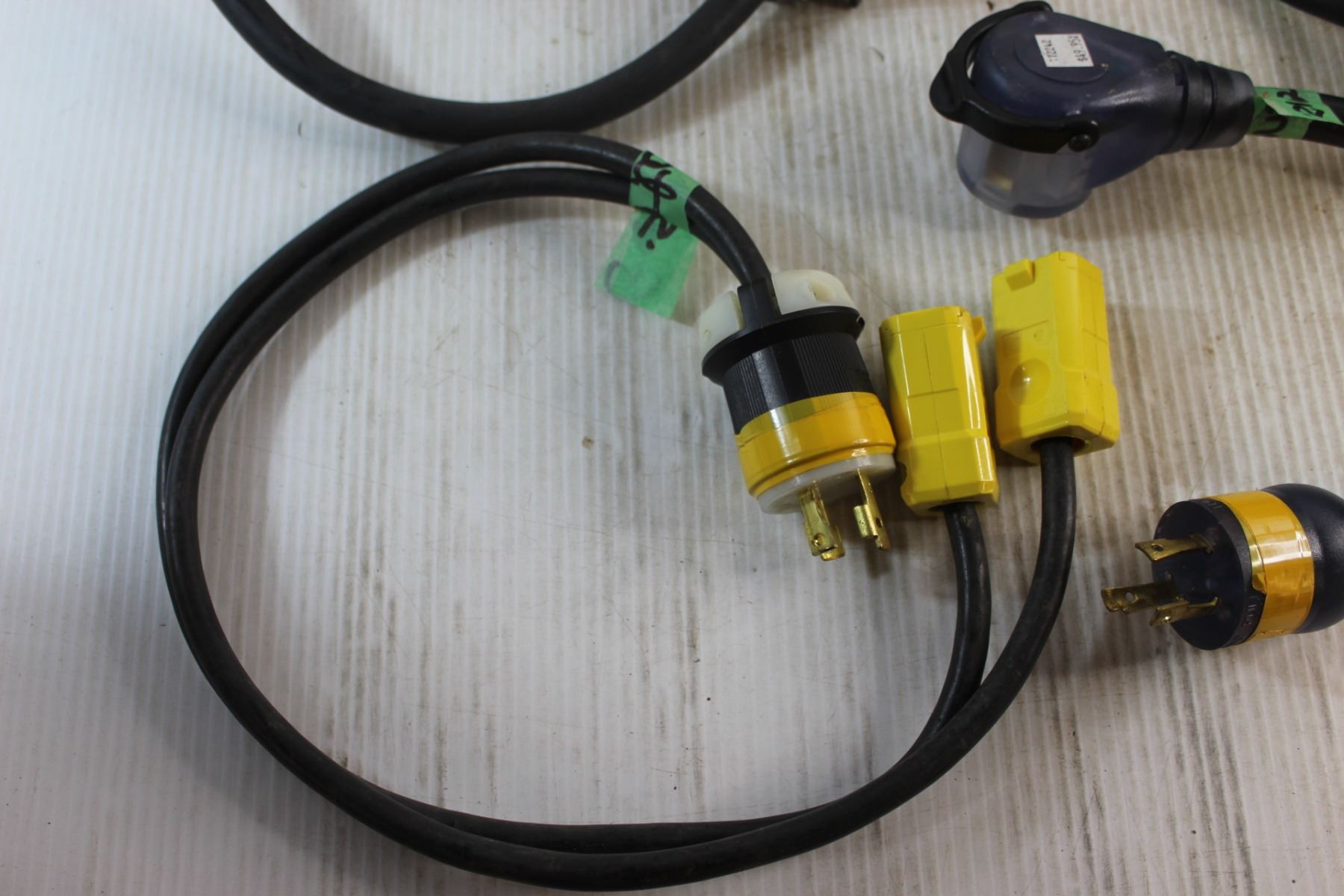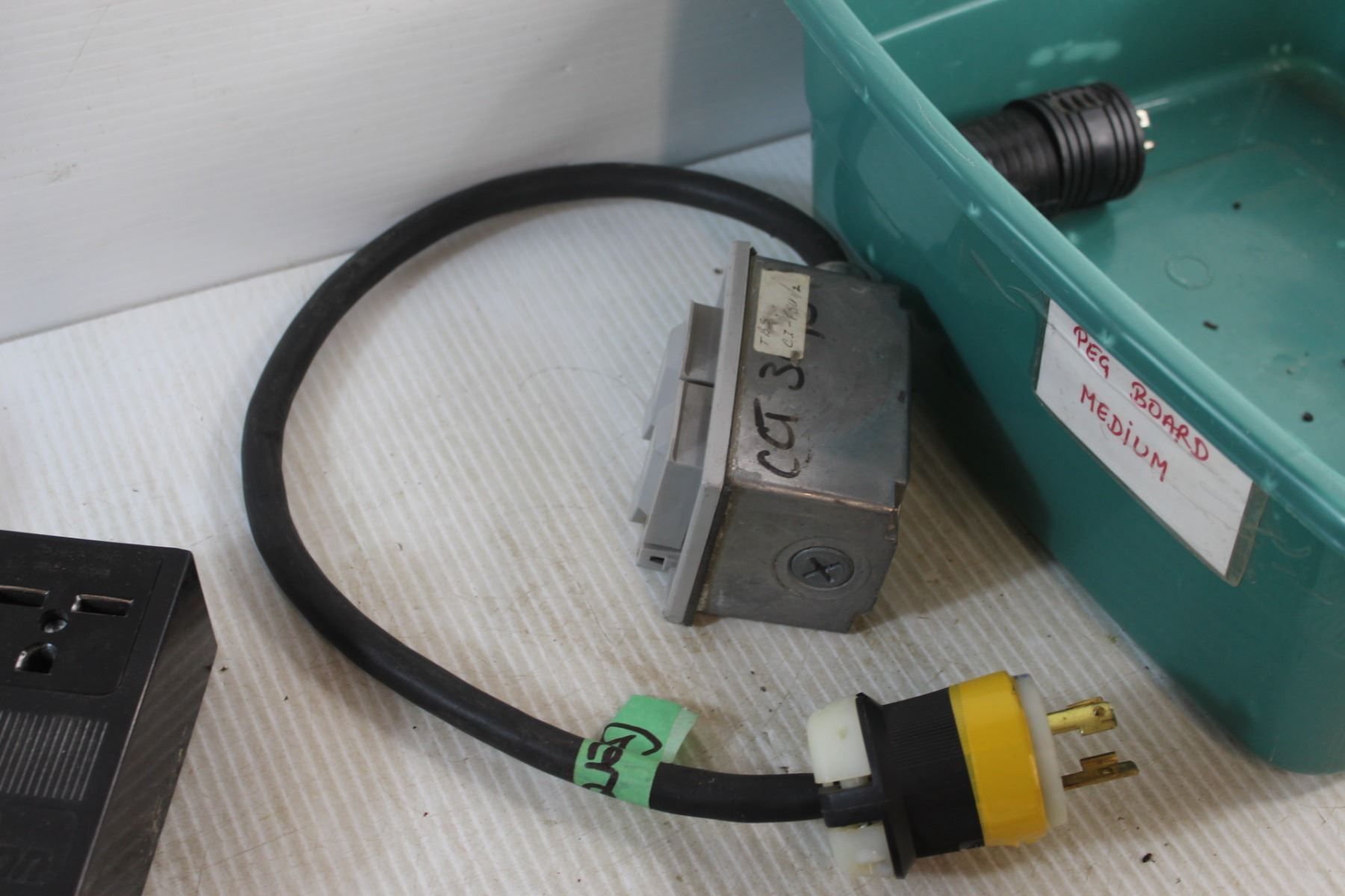 (5) Heavy Duty Extension Cords - As Is and Medium Plastic Tote