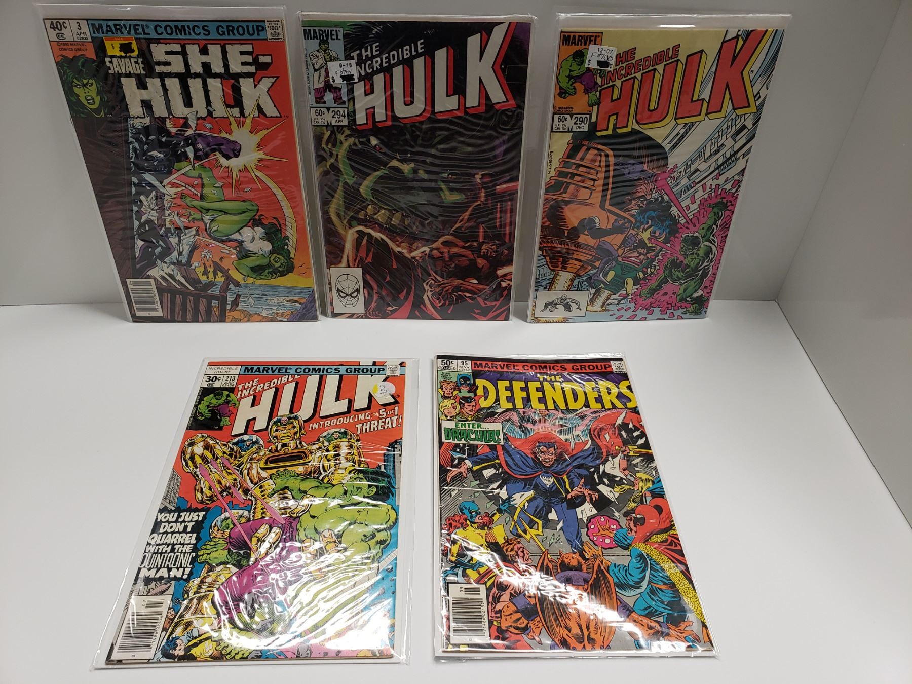 Savage She-Hulk 3, Icredible Hulk 213, 290 & 294, The Defenders 95, Good to Excellent