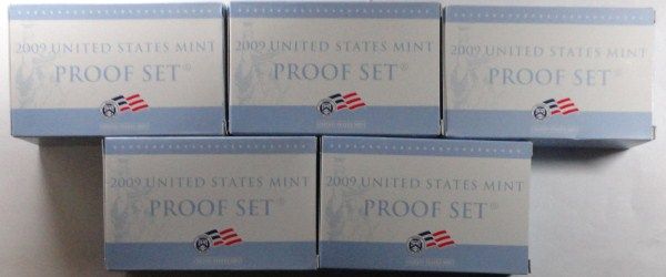 ( 5 ) INDIVIDUALUNOPENED BOXES OF 2009 U.S. PROOF SETS, , THEY ARE IN MINT CON