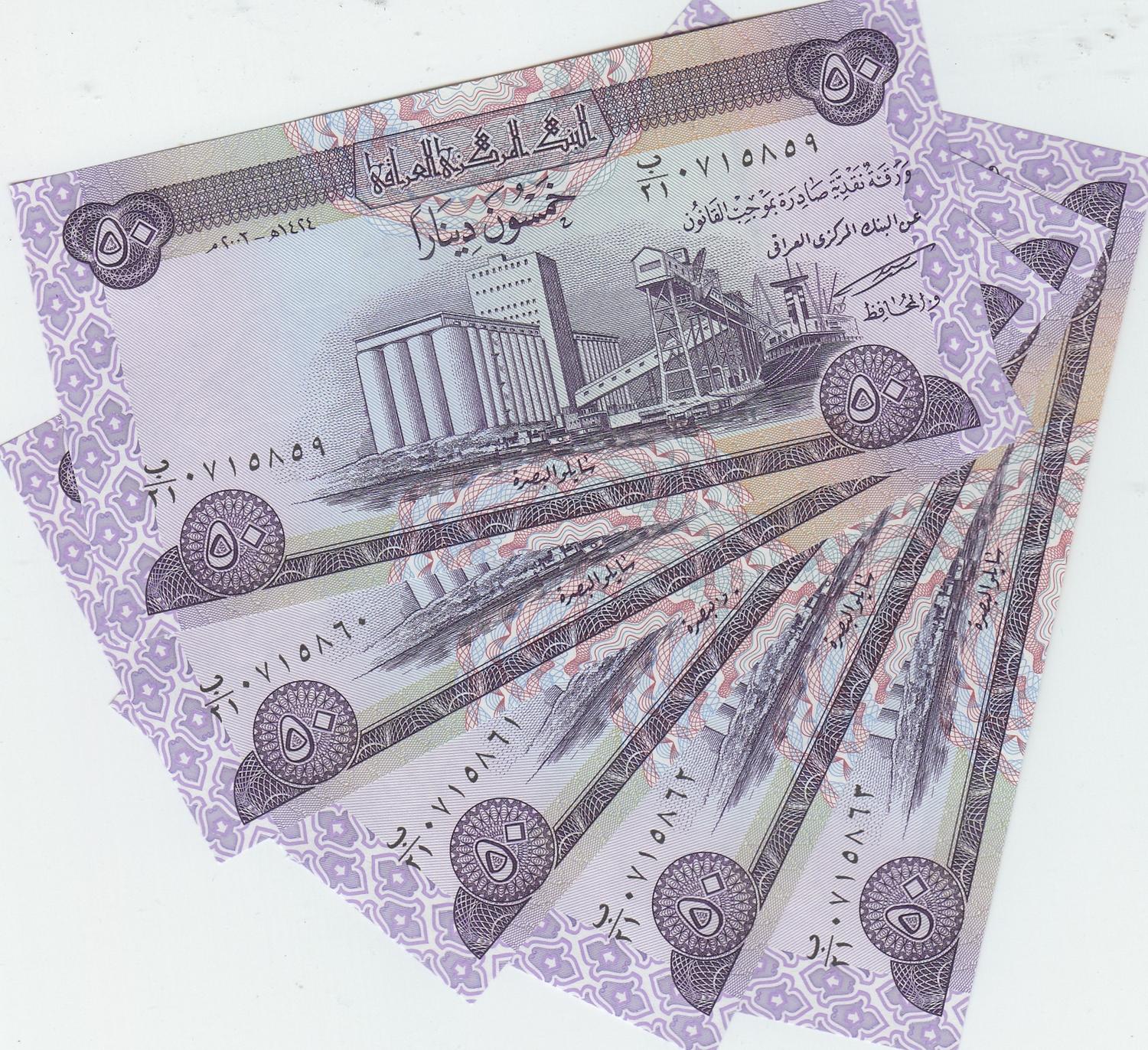 5 IRAQ 50 DINAR NOTES GEM UNCIRCULATED