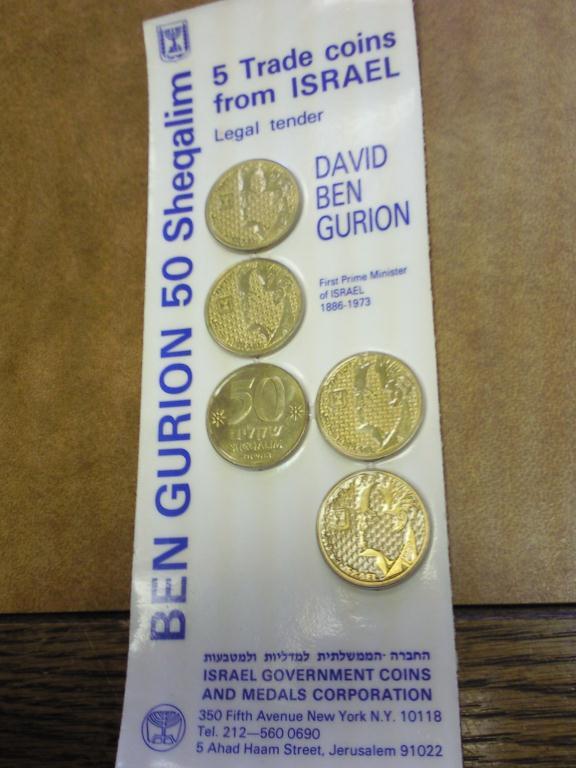 5 ISRAEL 50 SHEQALIM GURION UNC COINS (AS SHOWN)