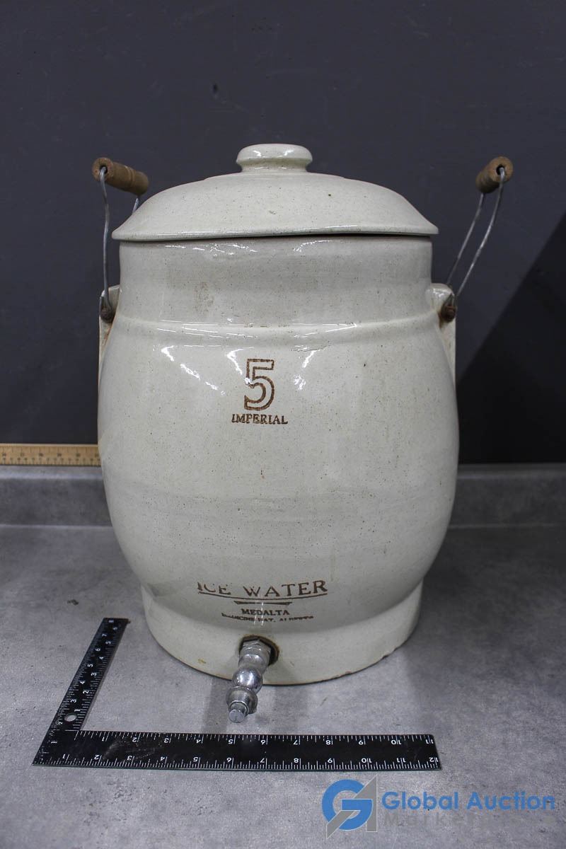 **#5 Imperial Medalta Ice Water Crock w/Lid & Handles