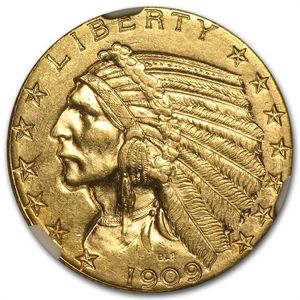 $5 Indian Gold Half Eagle - MS-61 NGC **|**|** Year: 1908-1929 ; Mint Mark: MS-61 ; Grade: Varies ; Denomination: 5 ; MSRP: $1000