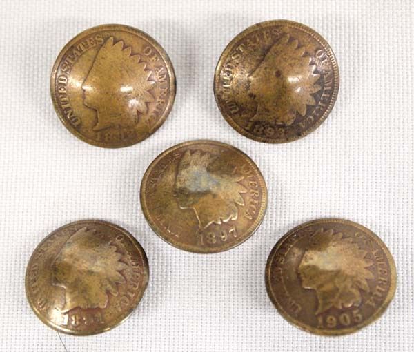 5 Indian Head Penny Buttons, measure 5/8''D