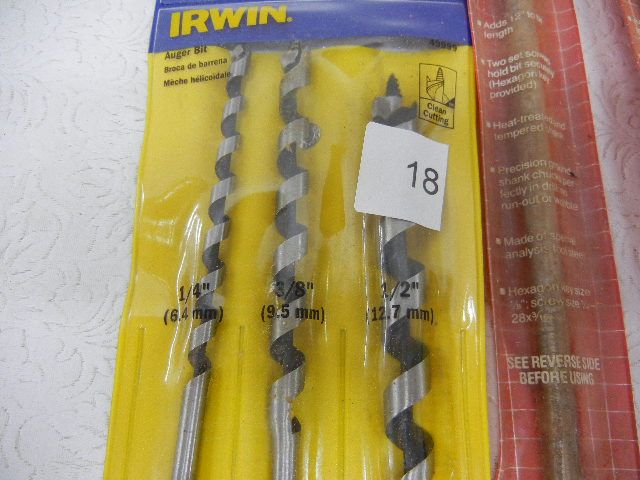 5-Irwin Wood Auger Bits and 4-Irwin Extensions