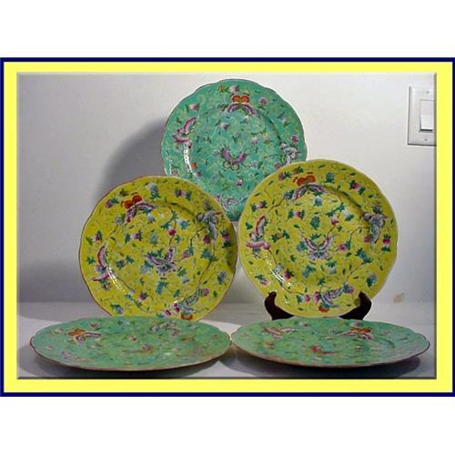 5 18-19th century Jiaqing Chinese Export porcelain butterfly plates. Made between 1796-1820.