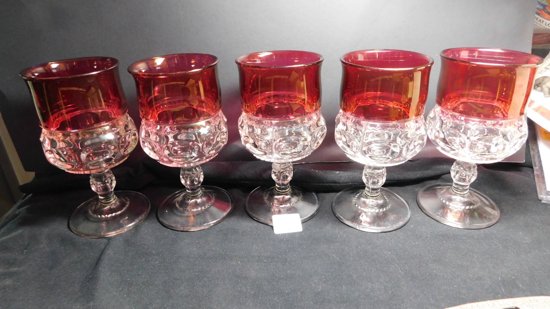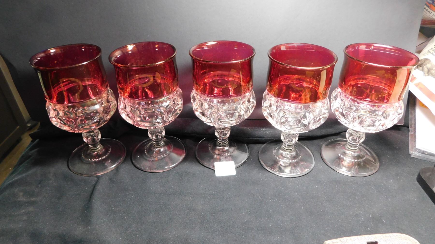 5 KINGS CROWN, THUMBPRINT, CRANBERRY WINE GLASSSES