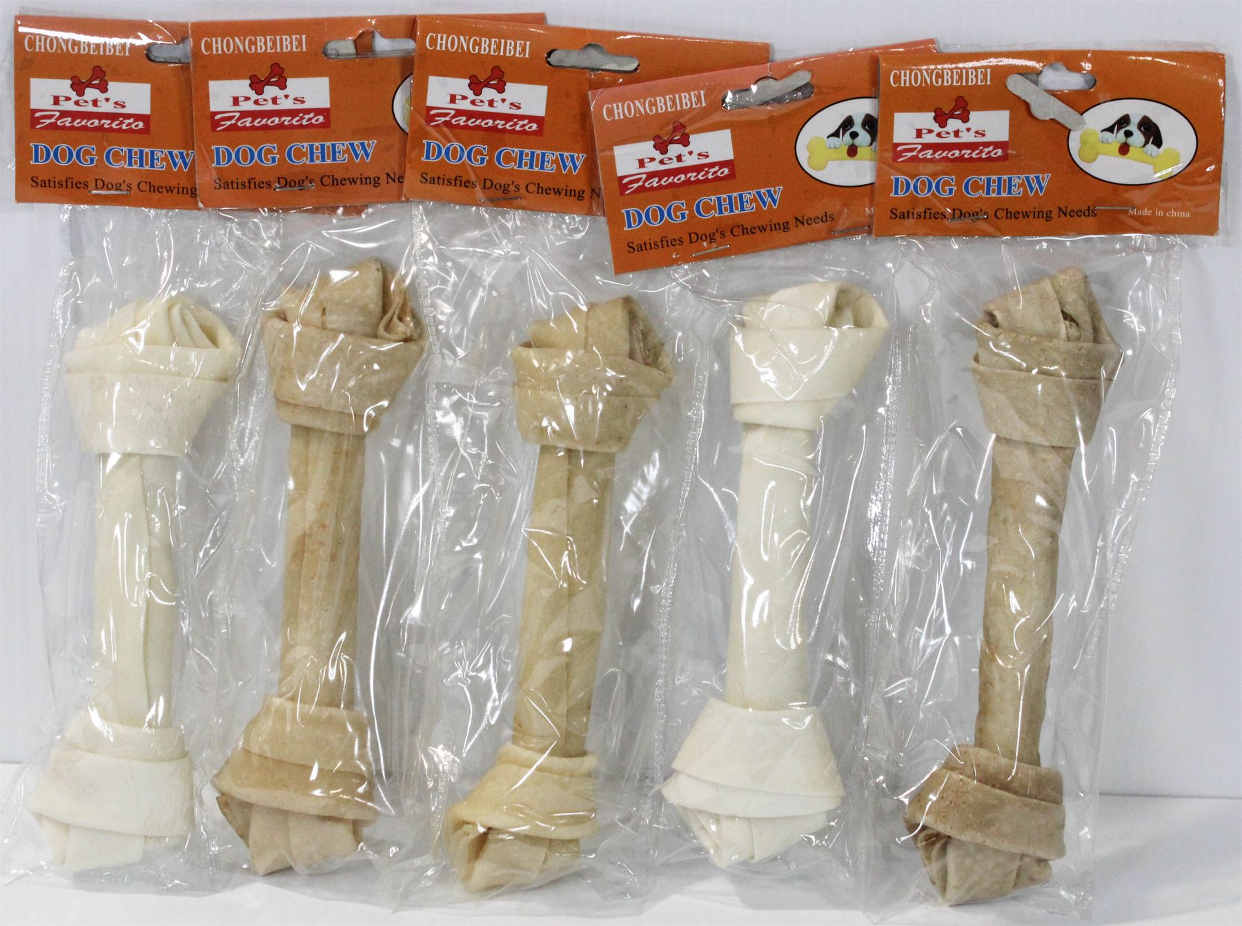 5 KNOTTED RAWHIDE DOG CHEW BONES