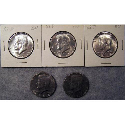 5 Kennedy Half Dollars, 3 are .14792% Silver