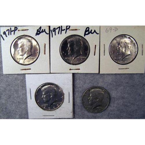 5 Kennedy Half Dollars, 3 are .14792% Silver