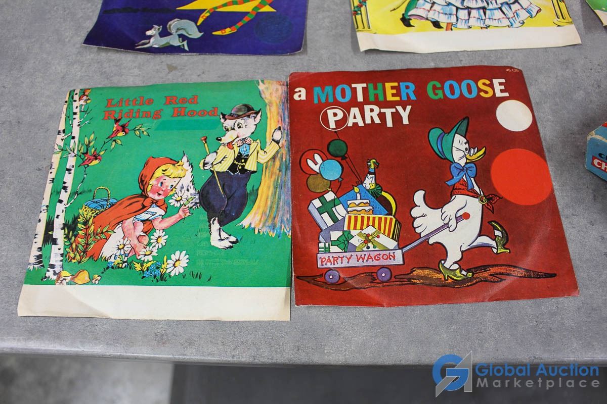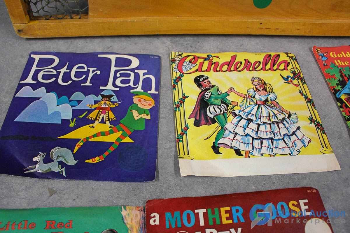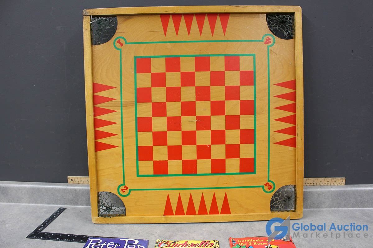 **(5) Kids Records & Wooden Crokinole/ Checkers Board