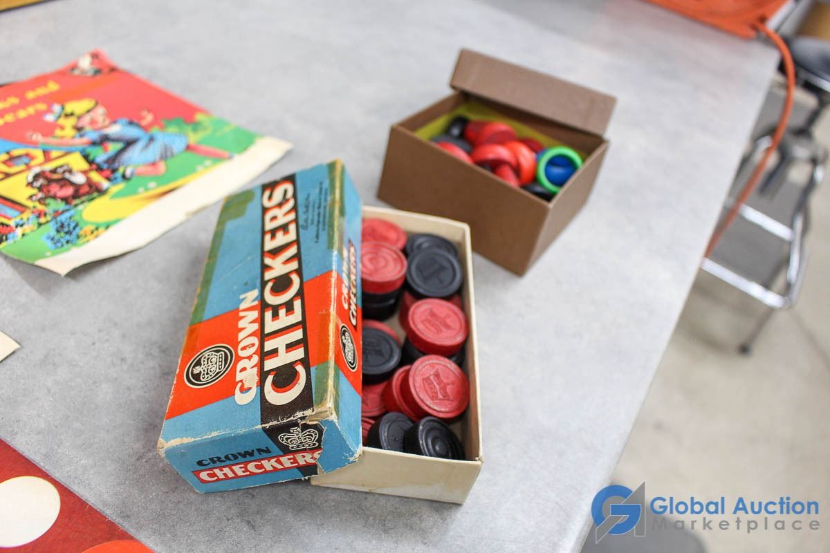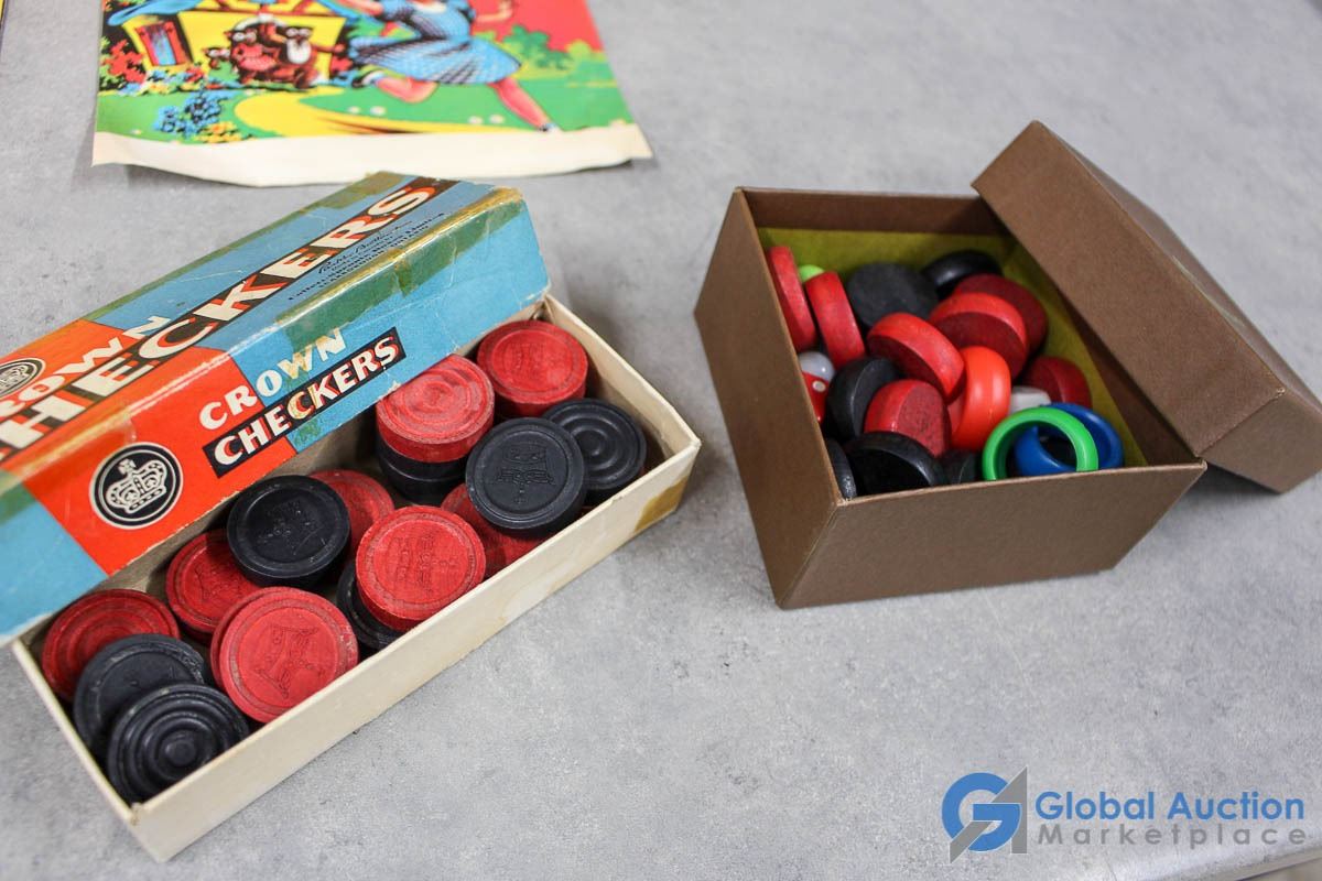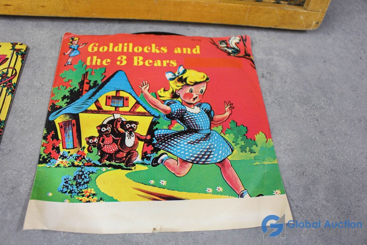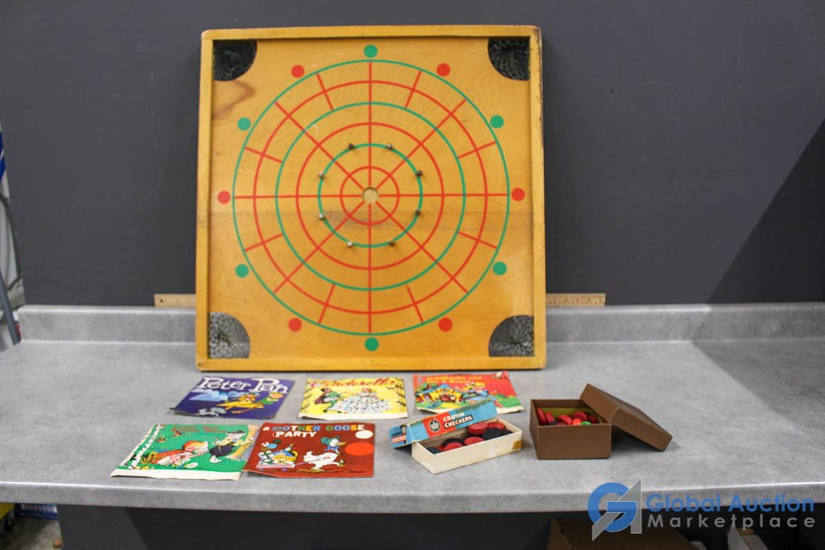 **(5) Kids Records & Wooden Crokinole/ Checkers Board