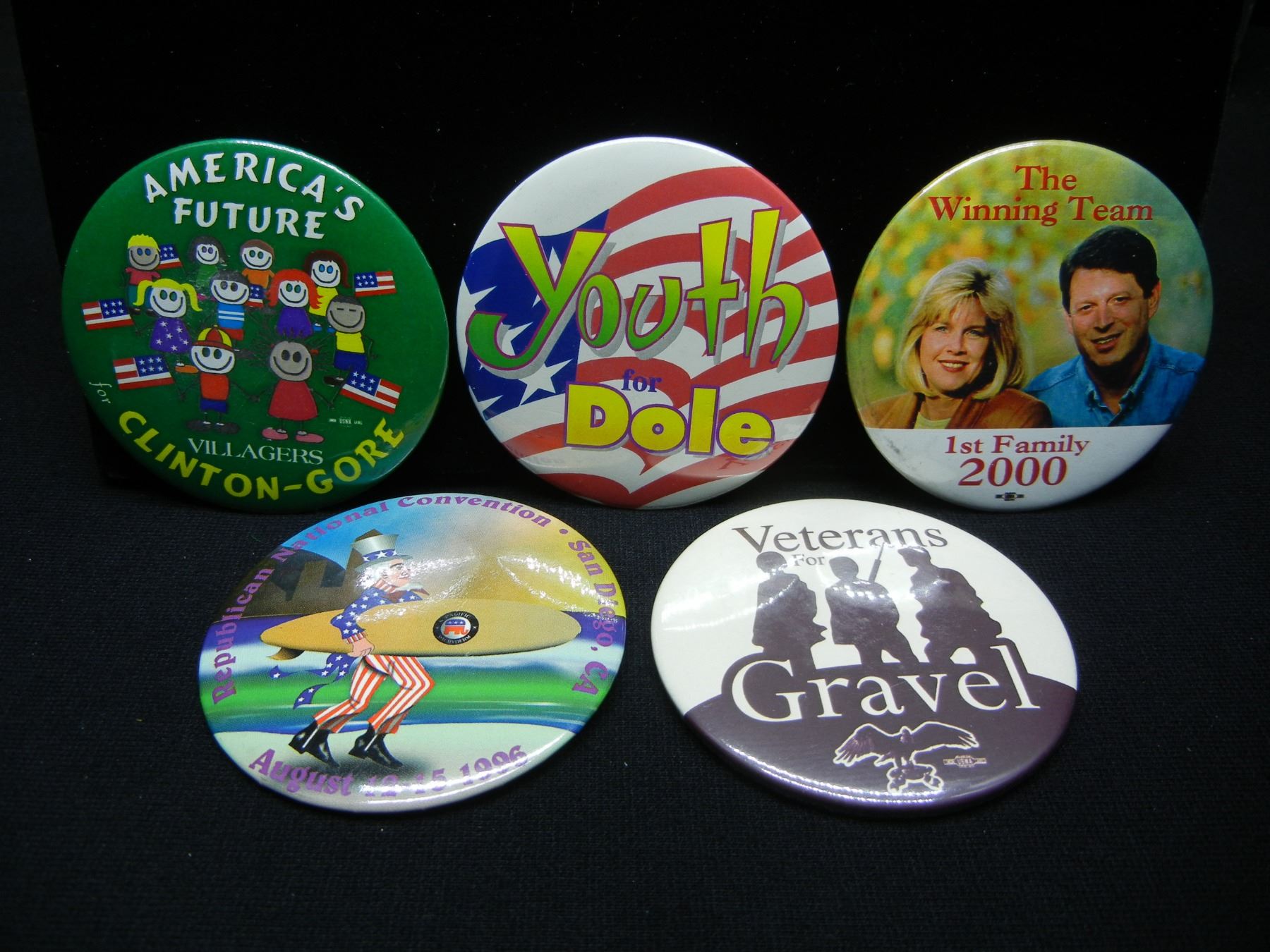 (5) LARGE (2.5'' WIDE) POLITICAL BADGES
