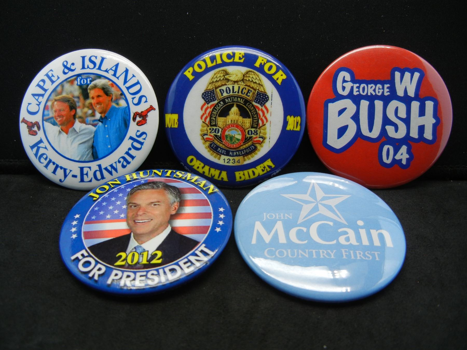 (5) LARGE (2 INCH WIDE) POLITICAL BADGES