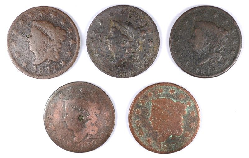 (5) LARGE CENTS (16, 17, 19, 22, 27)