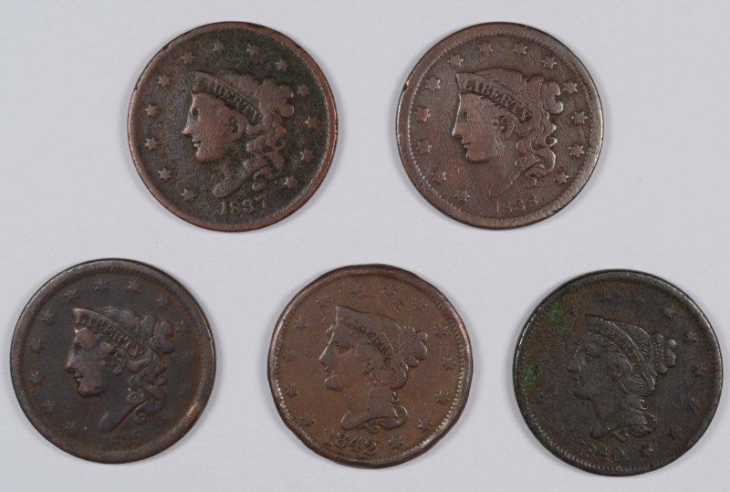 (5) LARGE CENTS (37, 38, 39, 40, 42) AG/VG