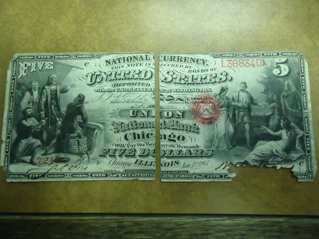 TYPE ORIG, SIGNATURES COLBY / SPINNER. AS SHOWN RIPPED IN HALF AND MISSING PORTION LOWER RIGHT, RETIAL VALUE IN VG $1000.00. UNION NATIONAL BANK OF CHICAGO.