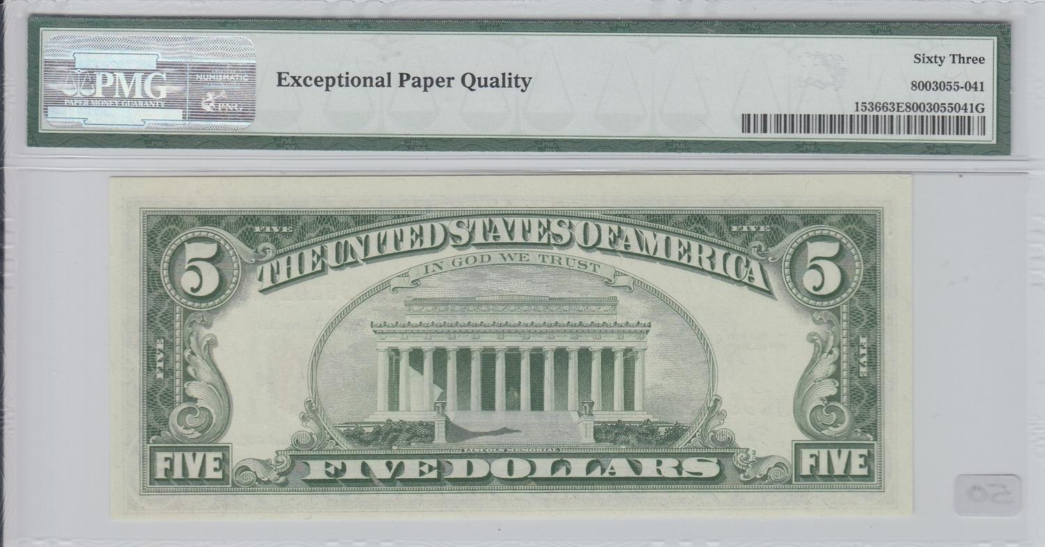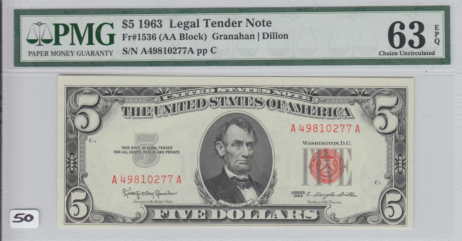 $5 LEGAL TENDER PMG UNC 63 EPQ 1963