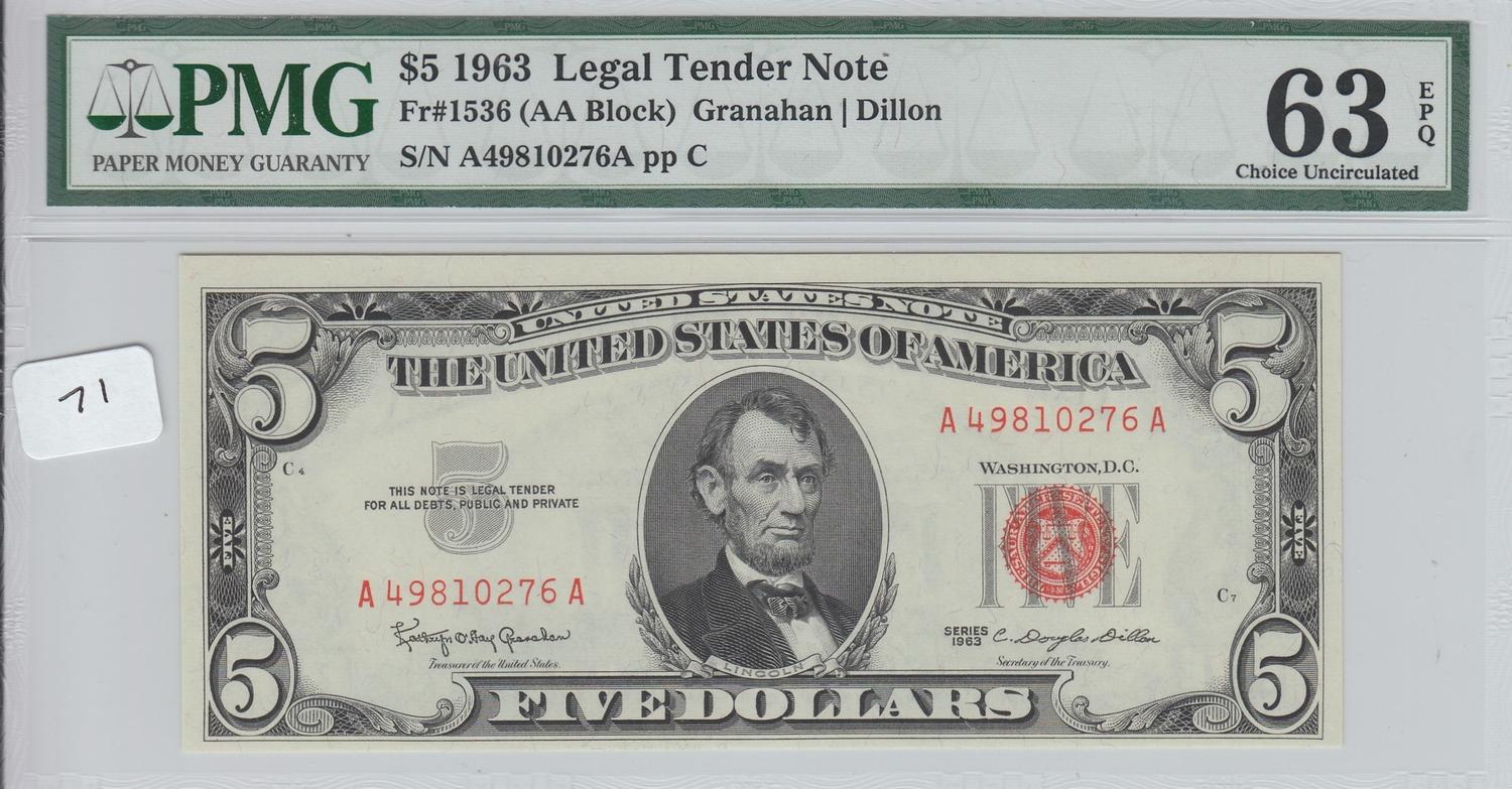 $5 LEGAL TENDER PMG UNC 63 EPQ