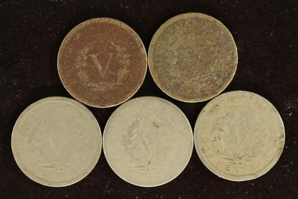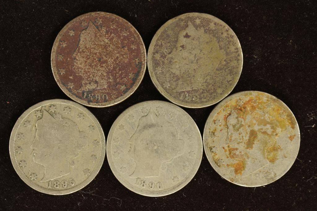 5 LIBERTY "V" NICKELS 1890, 92, 95, 96 & UNDATED