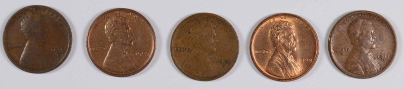 (5) LINCOLN CENTS (09 VDB, 09, 10-S, 11-S, 12-D)