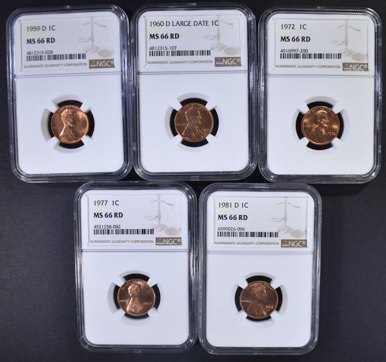 1959-D, 60-D LG DATE, 72, 77, 81-D. ESTIMATE $125 - $150.