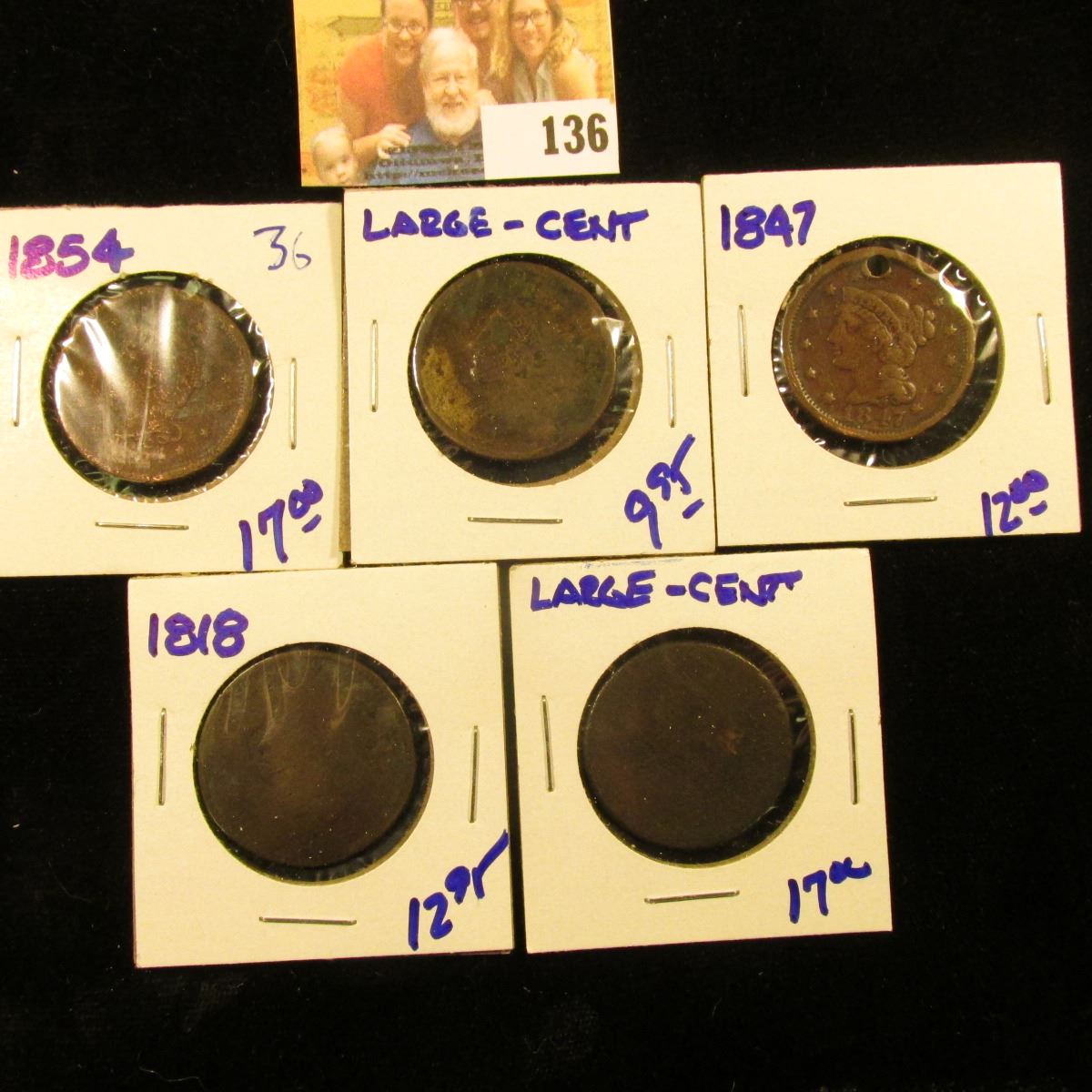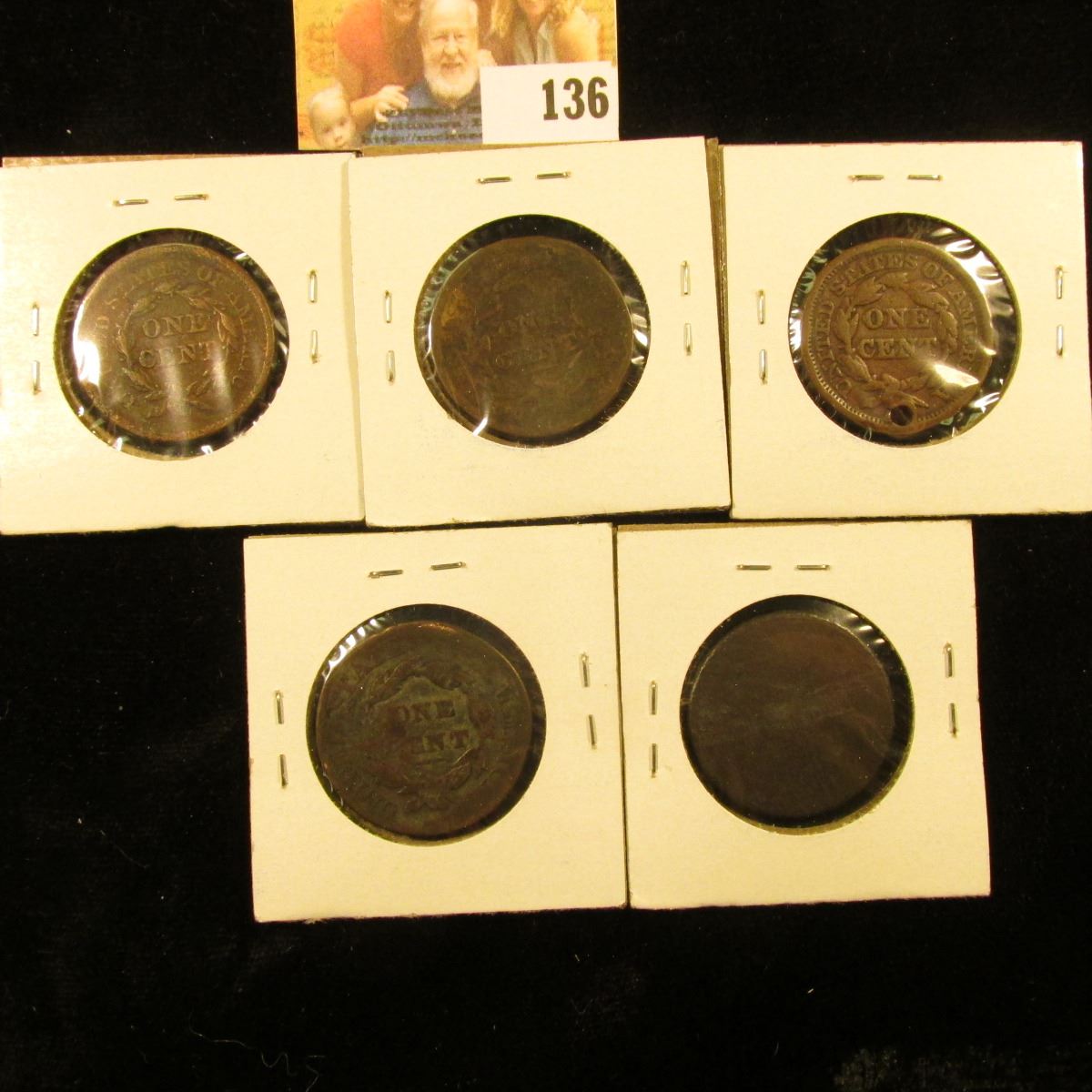 5 LOWER GRADE AND DAMAGED LARGE CENTS