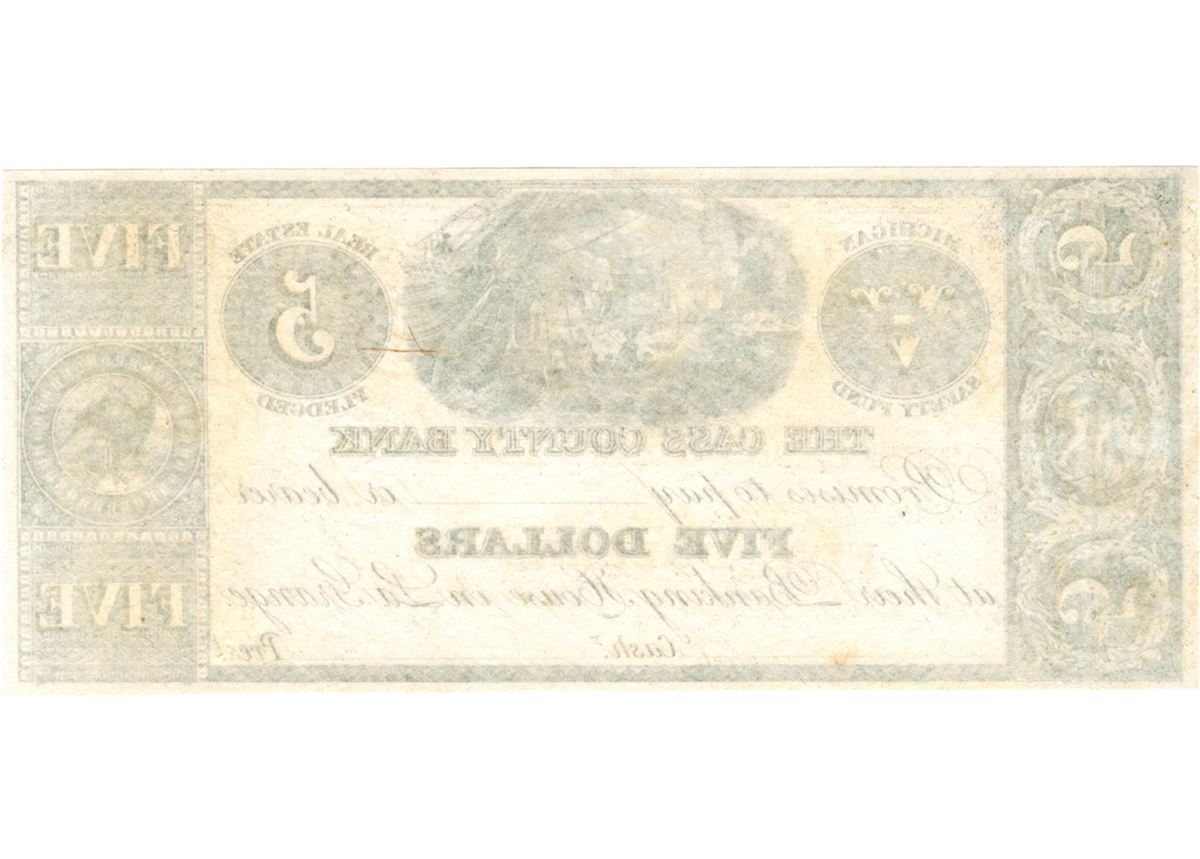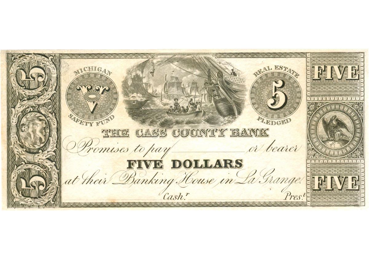 One $5 La Grange Michigan Cass County Bank Unsigned Large Note.