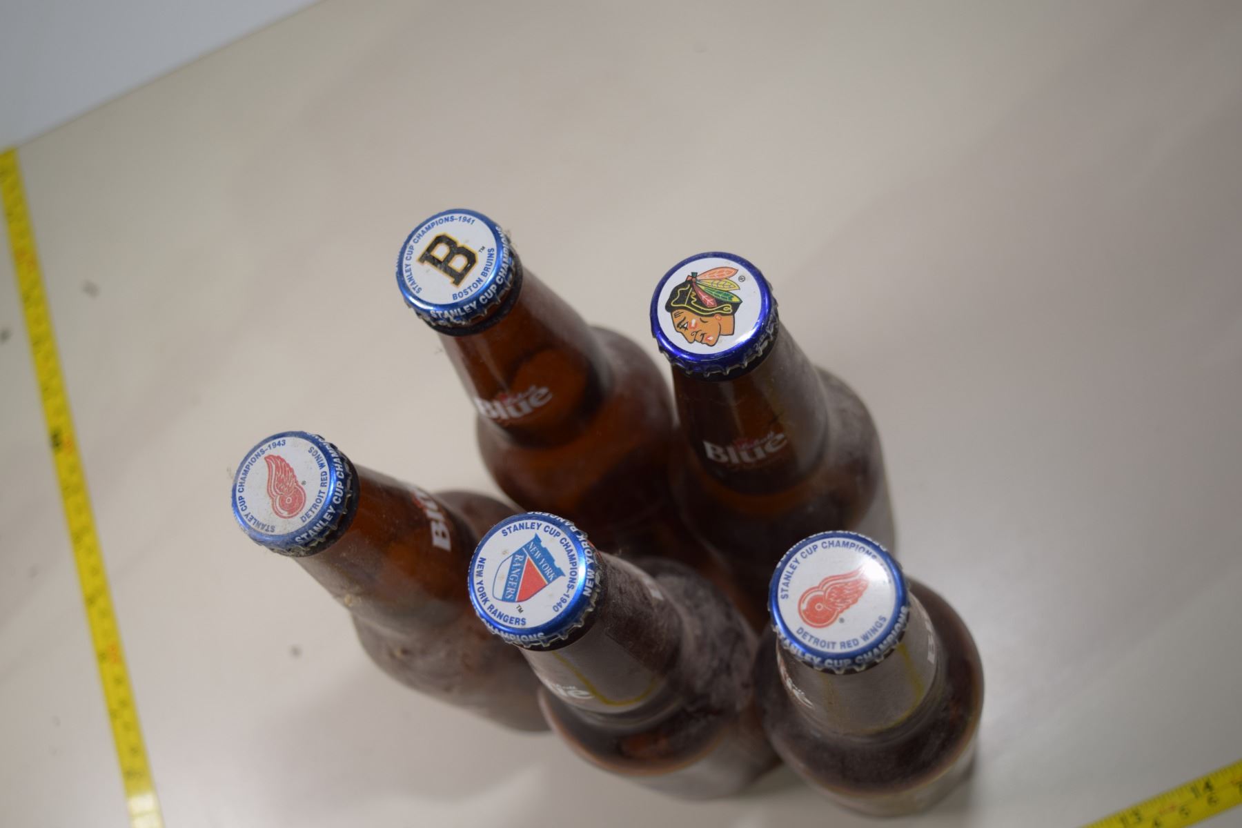 (5) Labatt's NHL Beer Bottles - Boston, Detroit, NY, Chicago