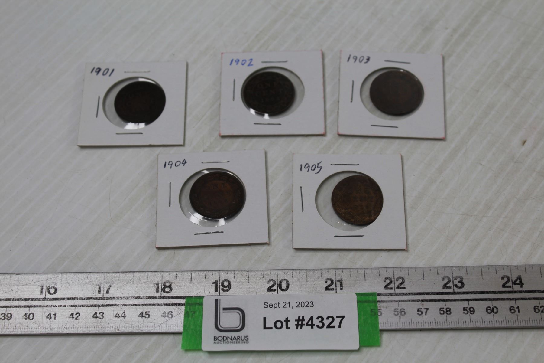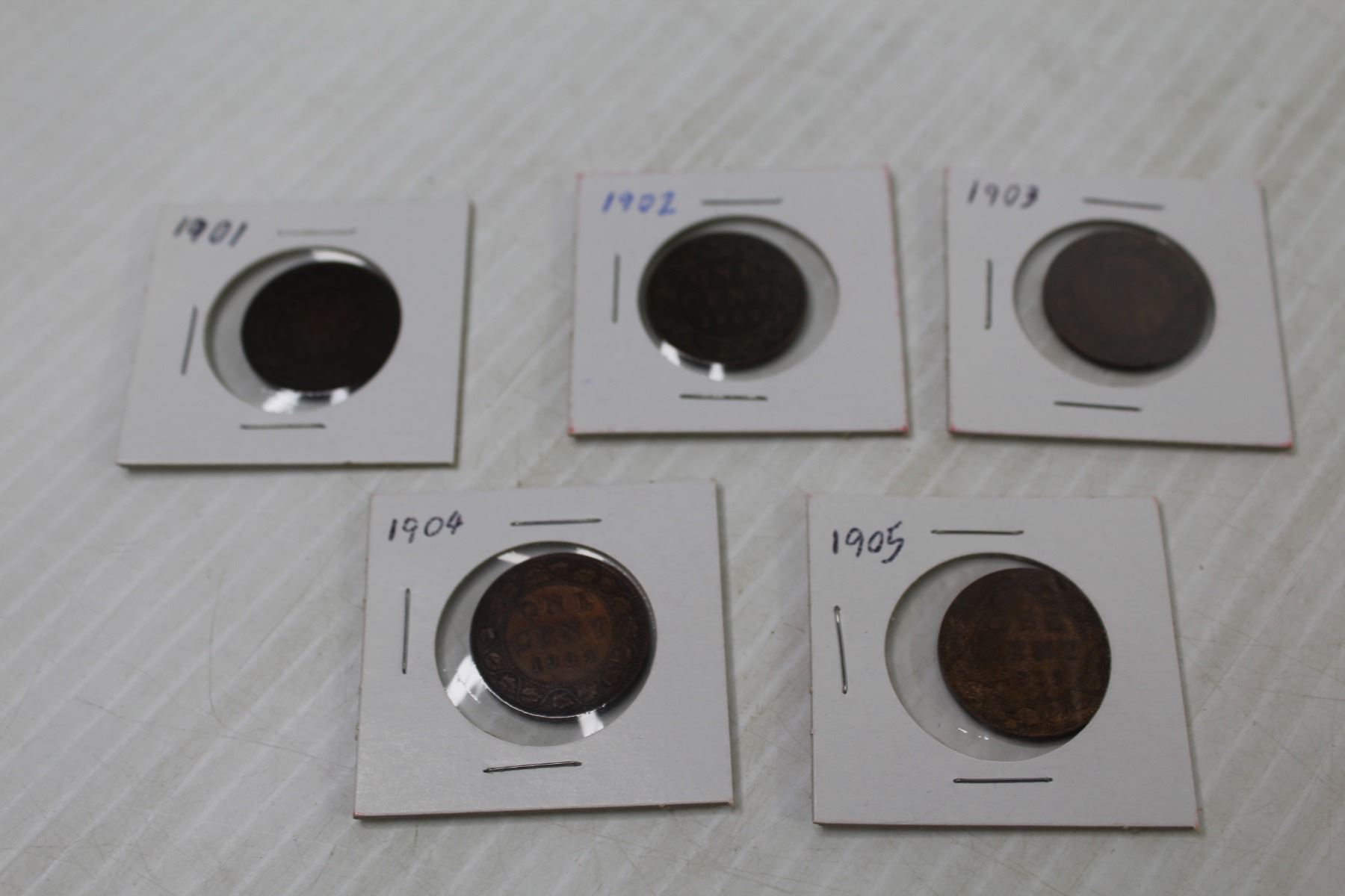 (5) Large Canadian Pennies (1901-02-03-04-05)