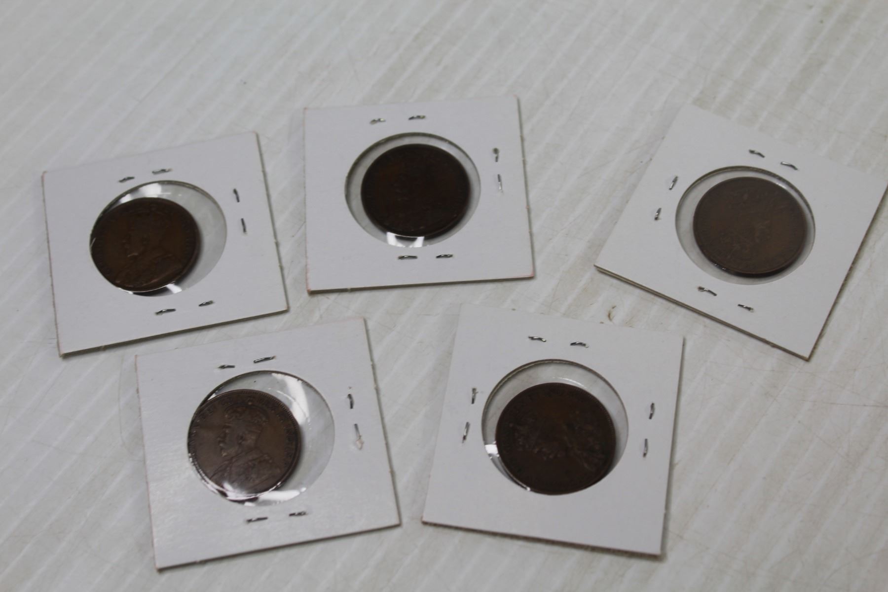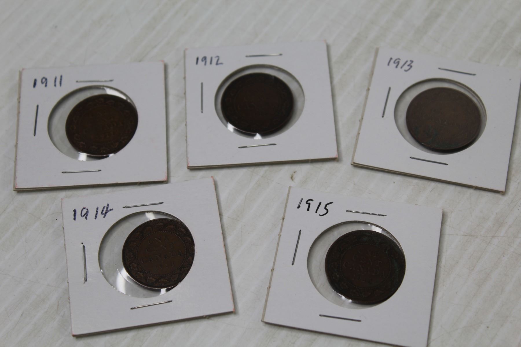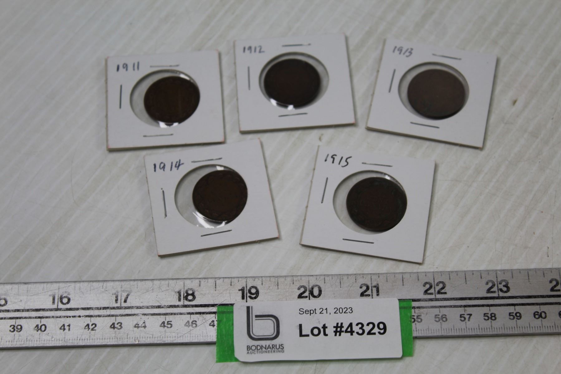 (5) Large Canadian Pennies (1911-12-13-14-15)