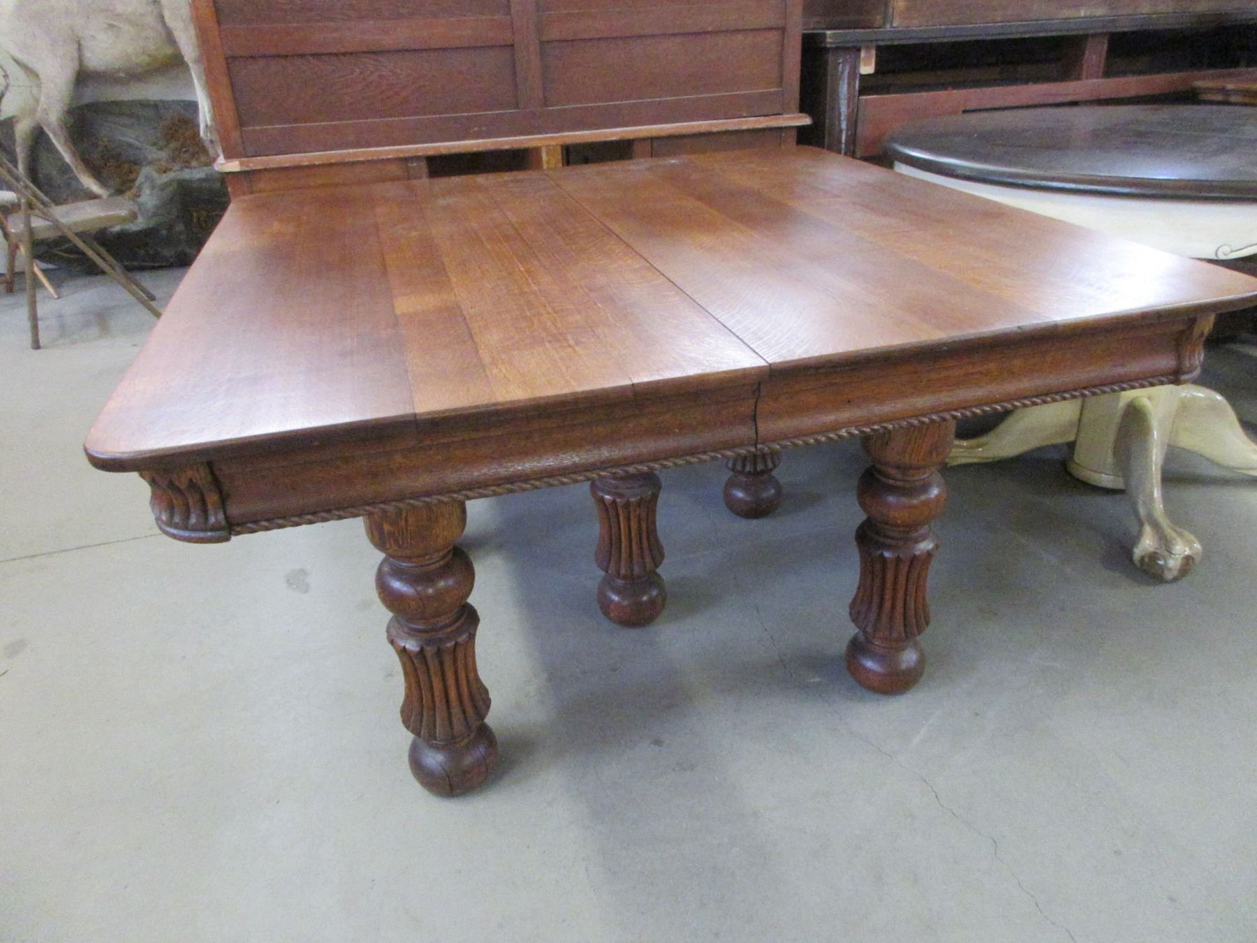 5 Legged Quarter Sawn Oak Table- Great Condition- 28"H X 47" X 47"- Carved
