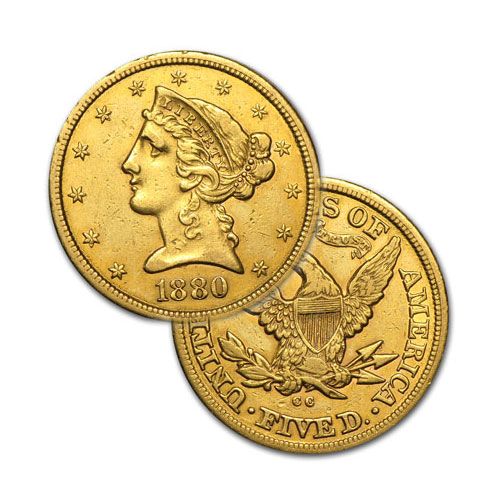 One piece $5 Gold Liberty Head - Half Eagle Bullion Coin 1/4 Oz (1839 - 1908). CIRCULATED - Dates Of Our Choice