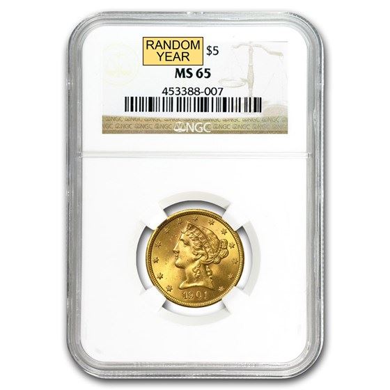 One piece $5 Liberty Gold Half Eagle MS-65 NGC