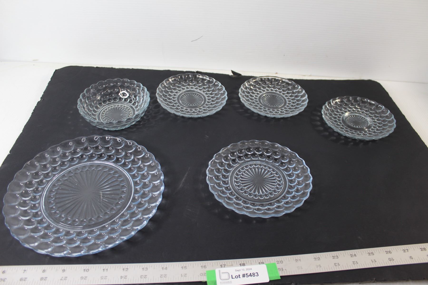 (5) Light Blue Bubble Pattern Glass Plates, Bowl
