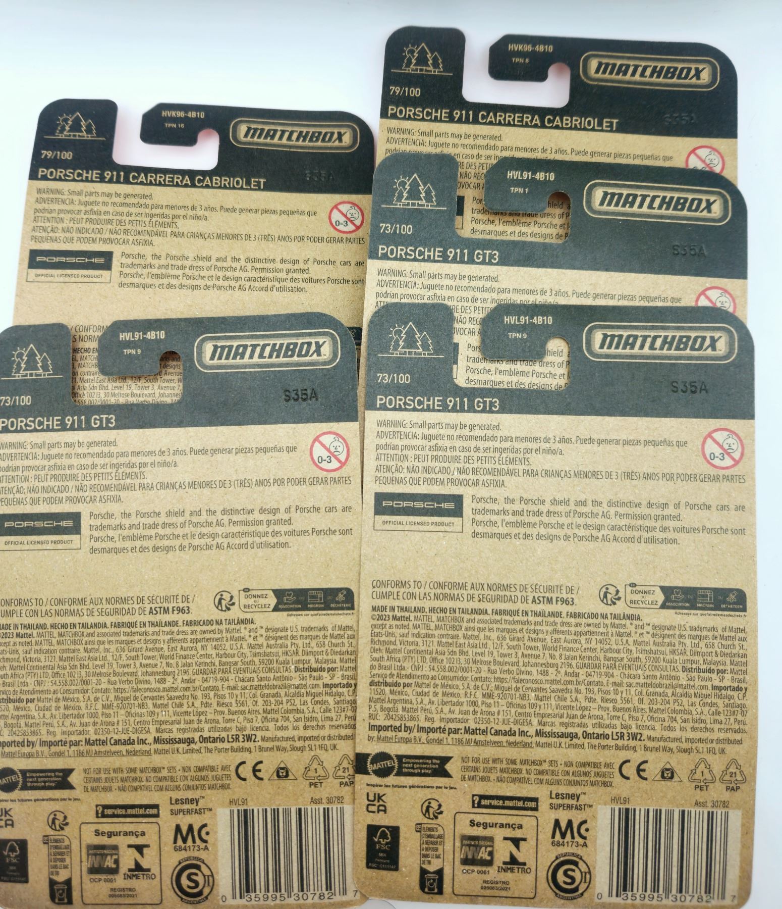 5 MATCHBOX PORSCHE 911 GT3 & CARRERA CABRIOLET