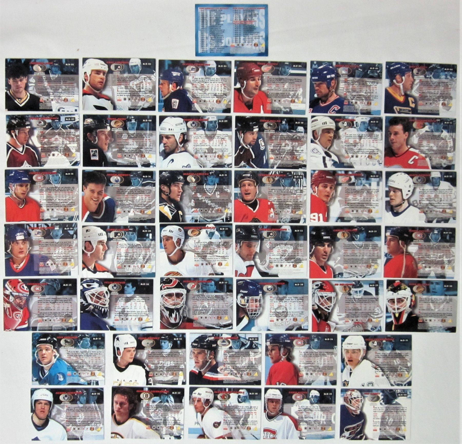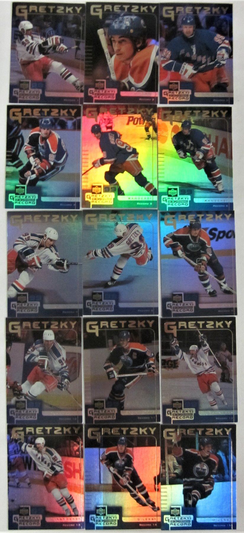 1996 PINNACLE (40 CARDS) 1992(27 CARDS & 4 HOLOGRAMS) 1997/1998 UPPER DECK ICE (40 CARDS) 1991 GRETZKY POSTER (9 CARDS) 1999 GRETZKY MOMENTS (15 CARDS)