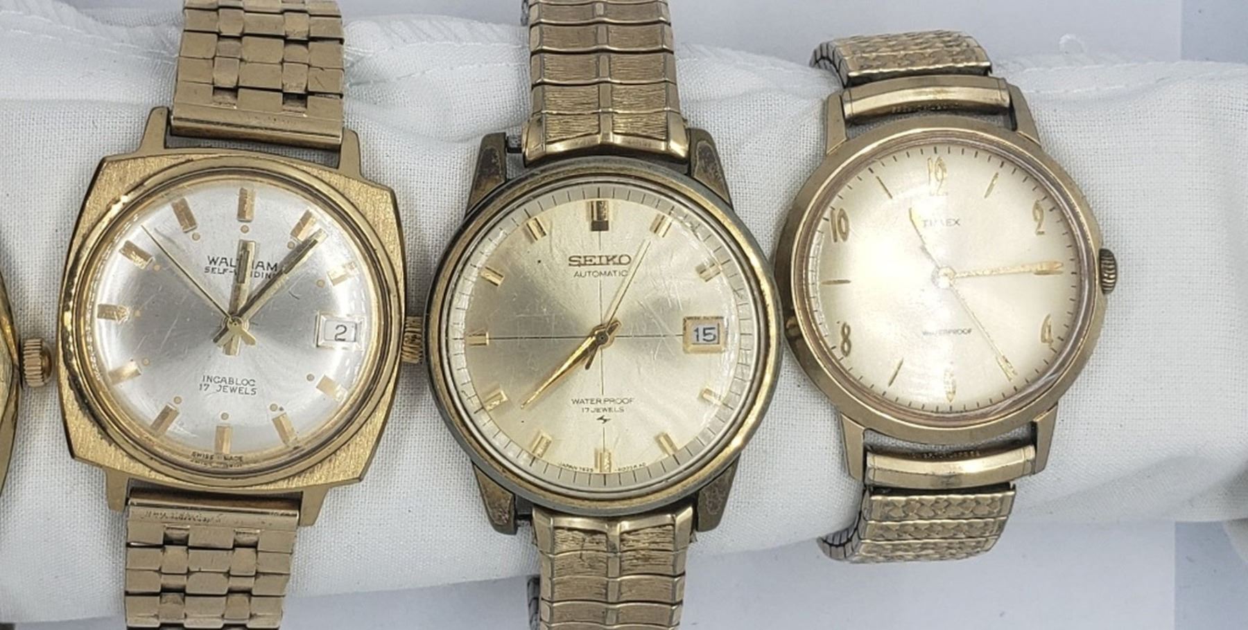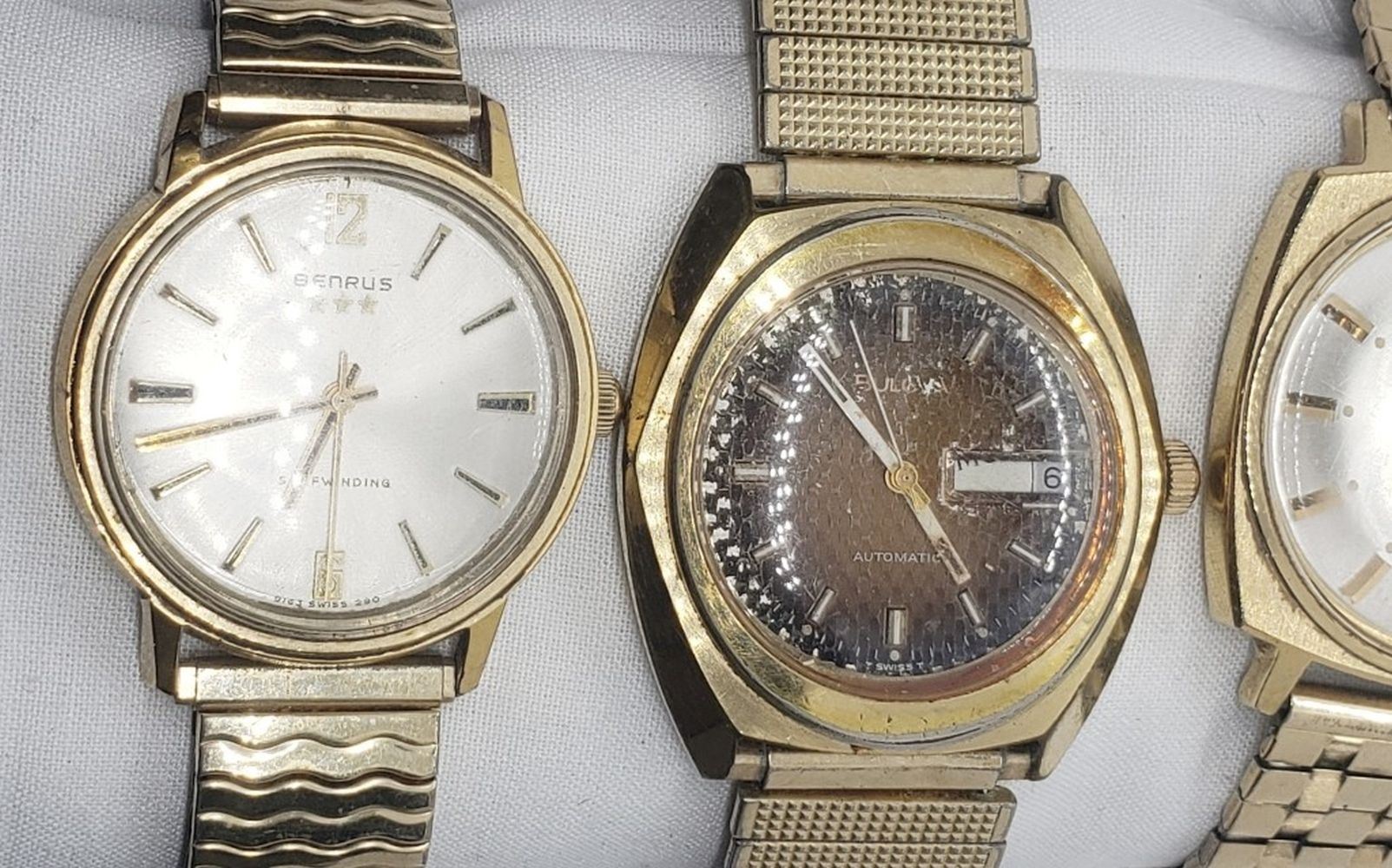 BENRUS (RUNS), WALTHAM (RUNS), SEIKO (RUNS), BULOVA, TIMES (RUNS) - (NOT RUNNING UNLESS MENTIONED- NO MISSING PARTS UNLESS MENTIONED)