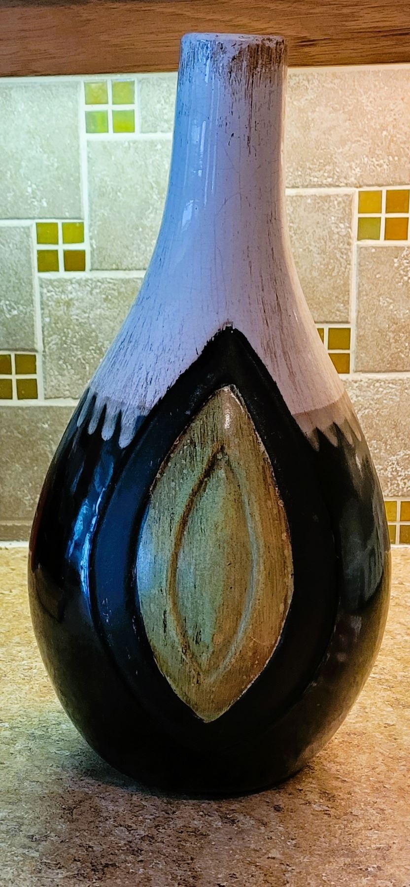 5) MID CENTURY POTTERY VASE, HAND THROWN &