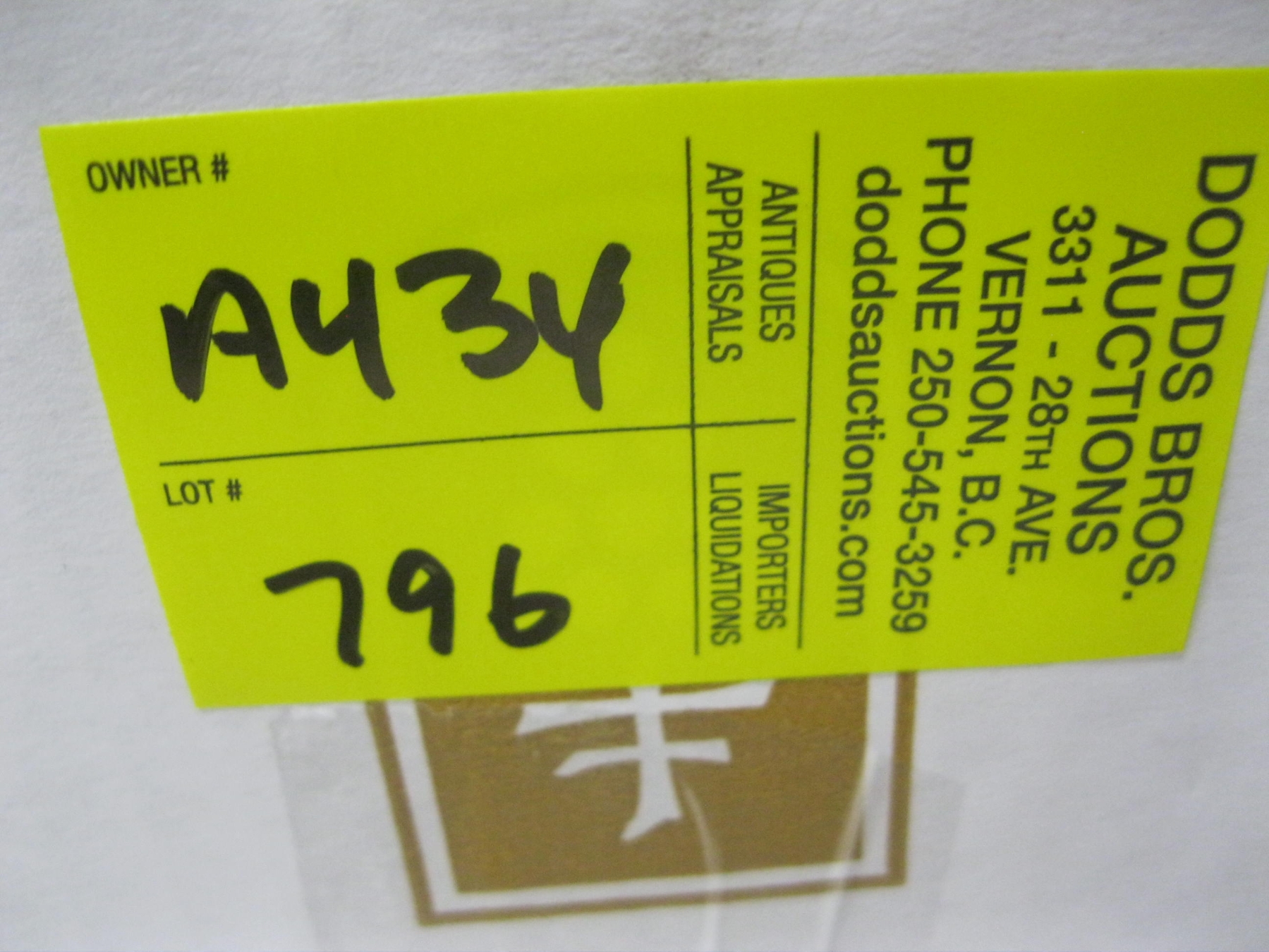 Attendance at the auction preview, or removal of purchased lots by purchaser/bidders and guests is done at their sole risk. Dodds Auction assumes no risk or liability, statutory, common law or otherwise whatsoever for the safety of those attending at the auction premises.